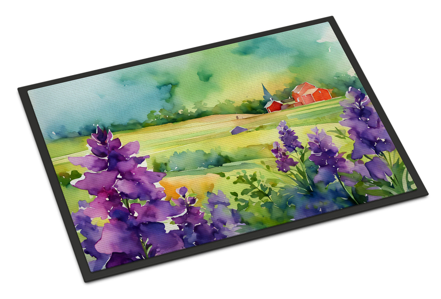 Doormat featuring breed specific New Jersey Violet artwork. Welcome your guests in style with our Artwork Door Mat, designed to withstand almost any weather condition. This mat, measuring approximately 24 by 36 inches, is held together by durable black binding tape. Its top layer, composed of polyester felt, is dyed with the eye-catching image you see on the mat. A few layers below provide the mat with stability, while its rubber bottom is stamped to help prevent slipping and ensures safety. Our mat works wonderfully as both an indoor or outdoor door mat. For cleaning, simply hose it off with water or use a power washer - no need for any cleaner that produces suds. Avoid scrubbing with a brush, instead, opt for the vacuum on floor setting. Designed manufactured and printed in the USA, this mat is a perfect addition to your porch, outdoor kitchen, entryway, or any indoor space. Its unique design makes it a charming decorative rug that greets your guests and adds a stylish touch to your home decor.