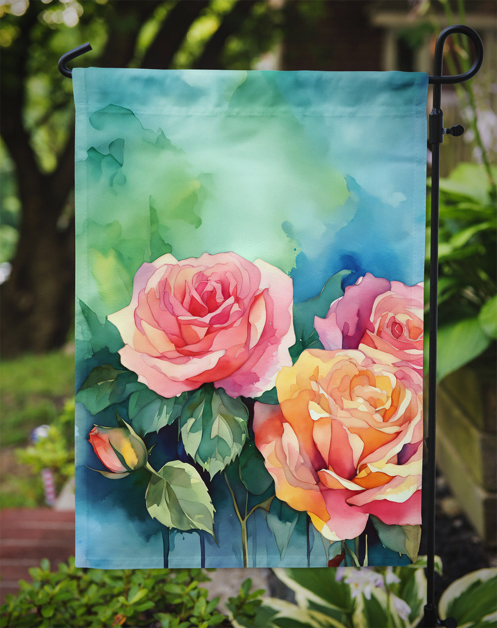 Garden Flag featuring breed specific New York Roses artwork. Enhance the beauty of your garden, patio, or yard with Caroline's Treasures Decorative Garden Flag, proudly made in the USA. Crafted from two pieces of thick, double-sided polyester fabric, this 2-ply garden flag is designed to withstand various weather conditions, making it water-resistant and weatherproof. Featuring correctly readable words on both sides, this garden flag offers a delightful visual experience from any angle. With its heavier weight, it stands out among other garden flags, ensuring stability and durability even in wind, rain, and snow. Measuring approximately 11 1/4 inches by 15 1/2 inches, this flag allows you to personalize your outdoor decor. It comes with a 1 1/2-inch sleeve sewn in, allowing easy attachment to any standard garden flag stand or garden size porch hanger (sold separately). Make a statement in your outdoor space with Caroline's Treasures Decorative Garden Flag, a vibrant and high-quality flag that adds color and personality to your surroundings. Proudly made in the USA, it's a symbol of quality craftsmanship and attention to detail.