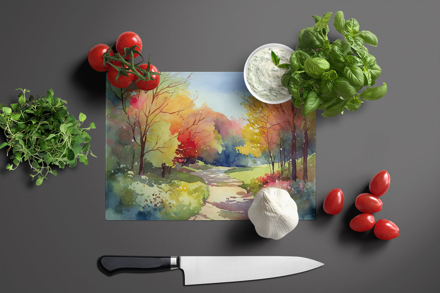 North Carolina Dogwoods in Watercolor Glass Cutting Board