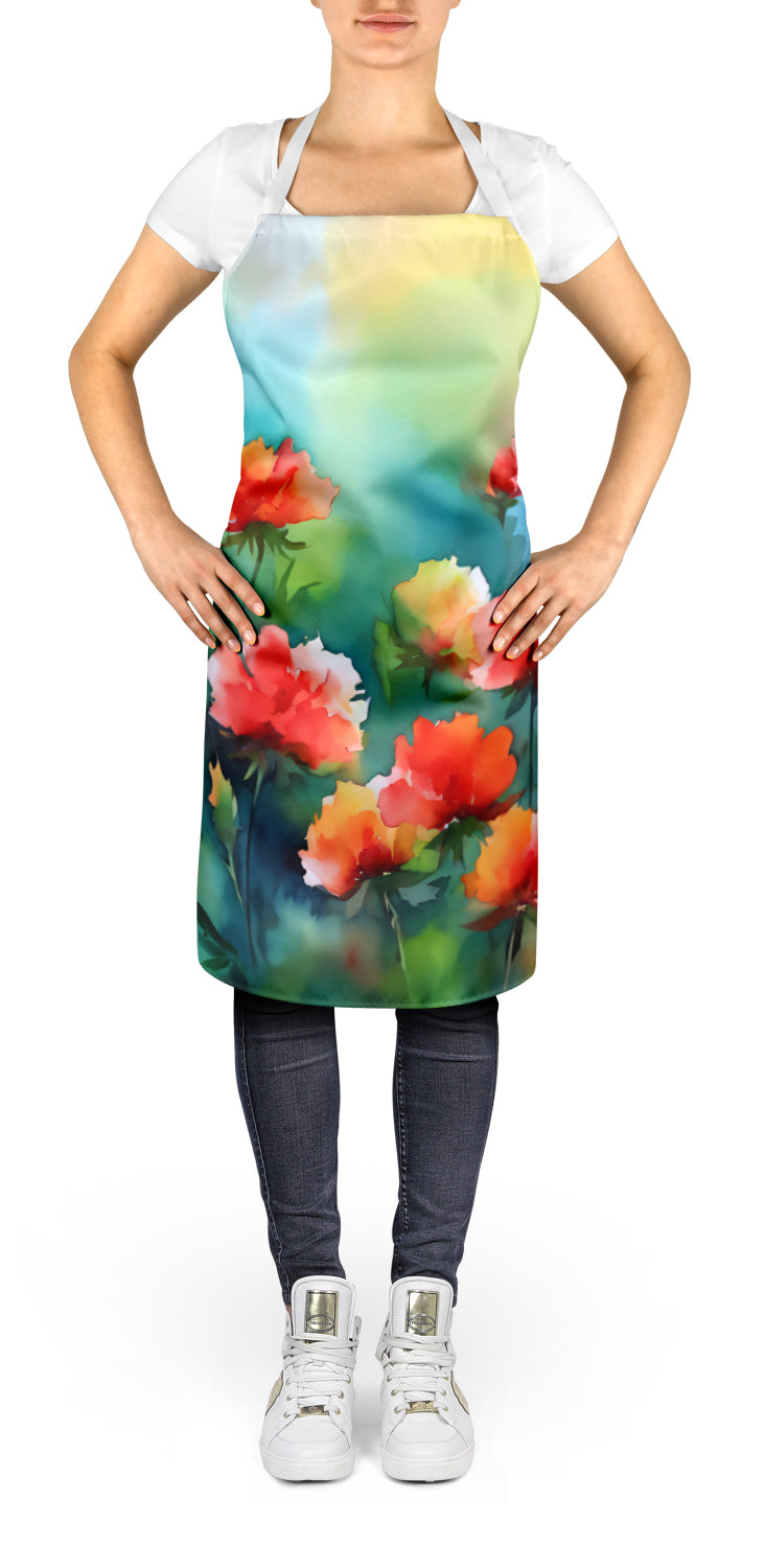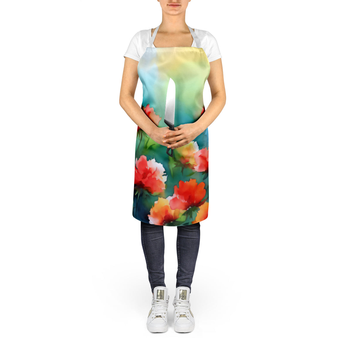 Apron featuring breed specific Ohio Scarlet Carnations artwork. Elevate your cooking, baking, and grilling experiences with our versatile Kitchen or BBQ Apron. This Bib Style apron isn't just limited to culinary activities - it also serves as an excellent baking apron, artist apron, server apron, gardening apron, or even a dog grooming apron. The apron showcases vibrant full-color artwork contributed by one of our talented artists, bringing a dash of style to your daily tasks. With dimensions of approximately 27"W x 30"H, it provides ample coverage to protect your clothing from spills and splashes. Our apron is meticulously crafted from 100% Ultra Spun Polyester, known for its durability and lightweight nature. The apron comes with white tie straps, ensuring a comfortable and adjustable fit for all. It's a perfect choice for kitchen apron enthusiasts, whether you are a woman or a man. Designed for easy maintenance, this apron is fully machine washable. The quick-drying polyester material actively reduces staining, keeping your apron looking fresh and new for longer. Our beautifully designed apron isn't just a functional kitchen accessory - it's a fashion statement in the culinary world!