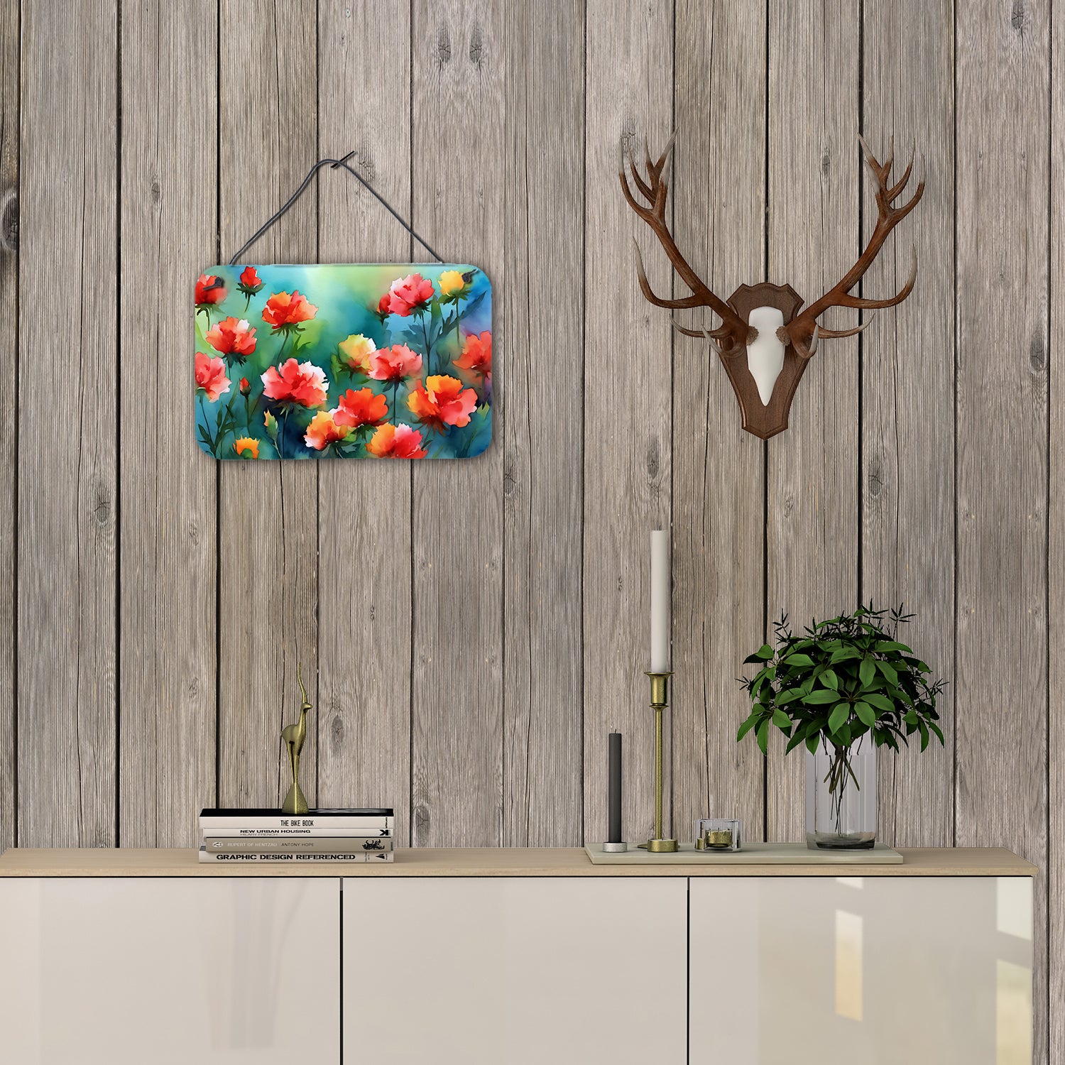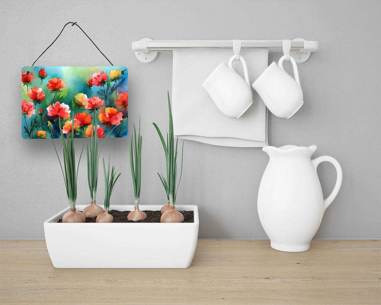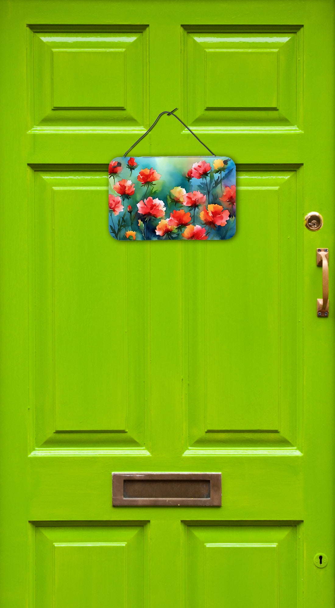 Wall or Door Hanging Prints featuring breed specific Ohio Scarlet Carnations artwork. Add a splash of color and artistic flair to any indoor or outdoor space with our Aluminum Artwork Prints. These unique prints, featuring full-color, multicolor designs, provide a versatile decorative touch that can enhance a kitchen, bathroom, office, outdoor patio, or even the front door area. Each print measures 8 inches by 12 inches, making it the perfect size to catch the eye without overwhelming your space. Constructed with durability in mind, these prints can be placed outdoors and withstand direct sunlight for a significant amount of time before any fading begins. Designed for easy installation, each print features a black hanging rope and has a lightweight profile. This allows for quick hanging with just about any nail or screw. For safety and aesthetic appeal, the print's corners are gently rounded. The back of the print showcases a brushed silver color for an added touch of elegance. Rust and fade-resistant, these Aluminum Artwork Prints are not only beautiful but are also built to last. Elevate your space with these stunning prints, crafted with care and artistic passion.