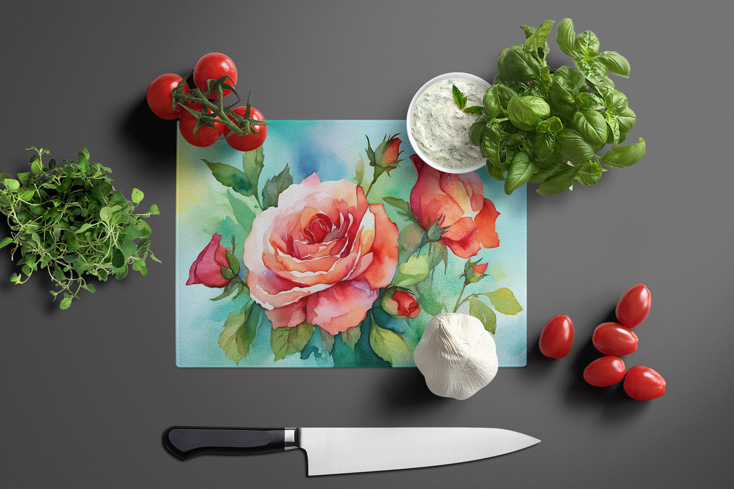 Oklahoma Roses in Watercolor Glass Cutting Board