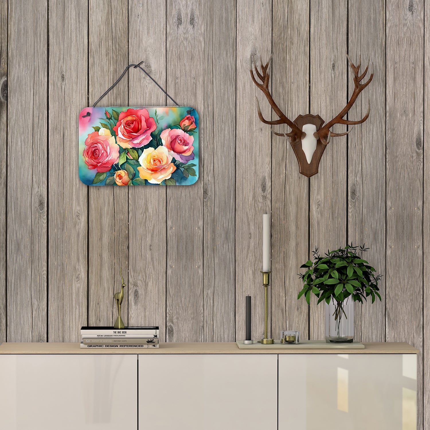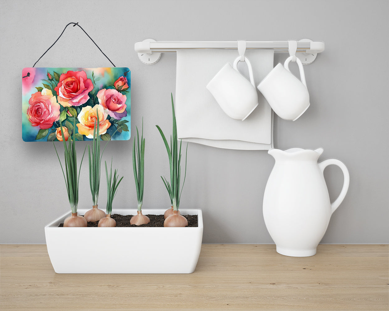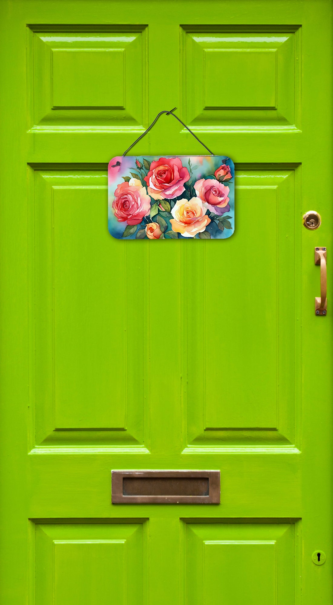 Wall or Door Hanging Prints featuring breed specific Oklahoma Roses artwork. Add a splash of color and artistic flair to any indoor or outdoor space with our Aluminum Artwork Prints. These unique prints, featuring full-color, multicolor designs, provide a versatile decorative touch that can enhance a kitchen, bathroom, office, outdoor patio, or even the front door area. Each print measures 8 inches by 12 inches, making it the perfect size to catch the eye without overwhelming your space. Constructed with durability in mind, these prints can be placed outdoors and withstand direct sunlight for a significant amount of time before any fading begins. Designed for easy installation, each print features a black hanging rope and has a lightweight profile. This allows for quick hanging with just about any nail or screw. For safety and aesthetic appeal, the print's corners are gently rounded. The back of the print showcases a brushed silver color for an added touch of elegance. Rust and fade-resistant, these Aluminum Artwork Prints are not only beautiful but are also built to last. Elevate your space with these stunning prints, crafted with care and artistic passion.