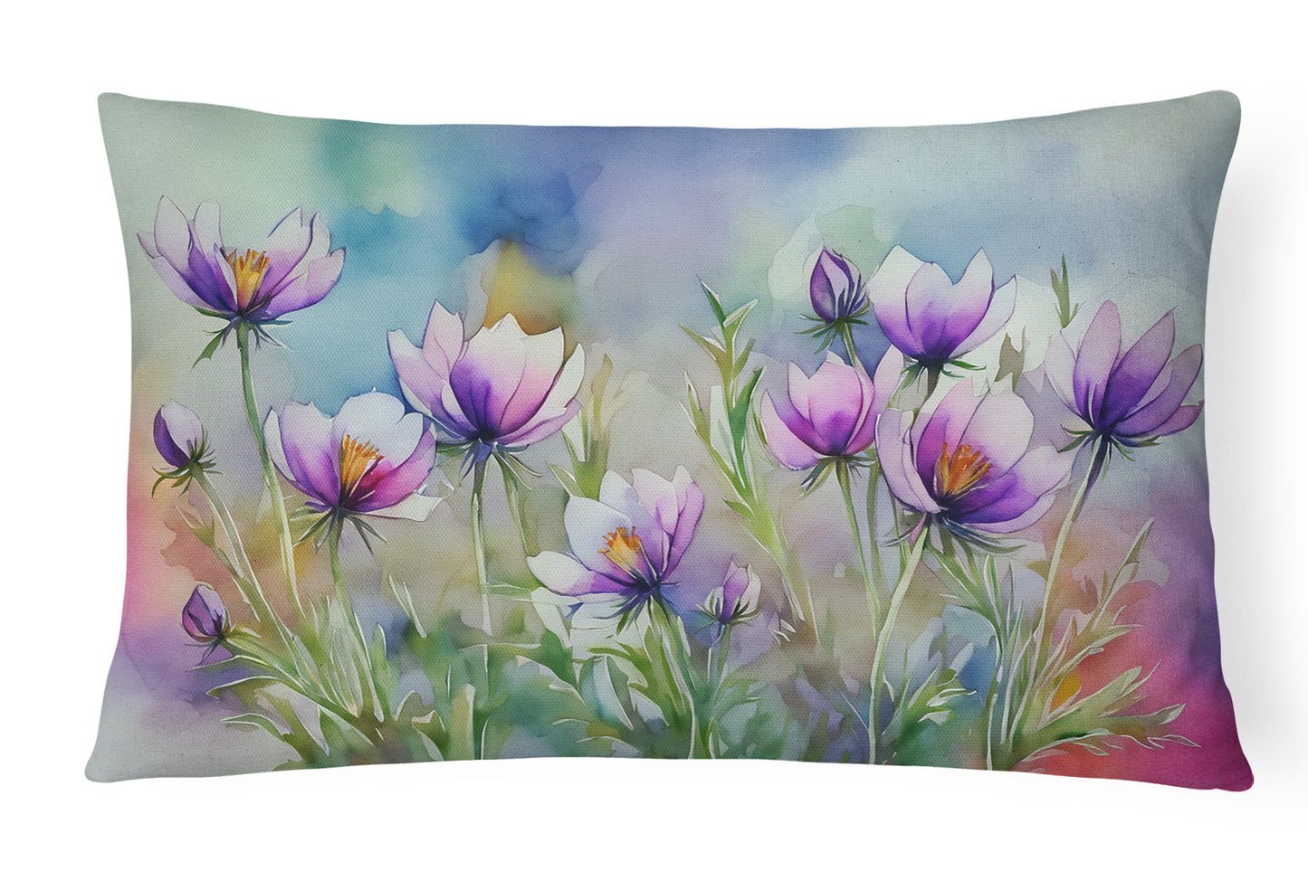 Throw Pillow featuring breed specific South Dakota Pasque Flowers artwork. Embrace the fusion of comfort and style with Caroline's Treasures Fabric Decorative Pillow. This 12x16 inch outdoor pillow is designed to complement your patio furniture, adding a splash of color and artistry to your outdoor setting. Constructed with a 100% Polyester Fabric pillow sham filled with a plush pillow form, this cushion is as comfortable as it is durable. Our outdoor pillow utilizes a novel fabric, meticulously woven for enhanced water resistance. This soft canvas material is equally suited for your indoor couch as well as outdoor settings such as the patio, porch, or veranda. To ensure enduring vibrance, we employ colorfast dyes resistant to fading even when subjected to weather elements. The making of this pillow involves the delicate sewing together of three fabric pieces to create a sham, into which a polyester insert is carefully placed. The result is an overstuffed pillow that tenaciously holds its shape. With both the sham and the pillow insert crafted in the United States, these handmade pillows are a testament to superior local craftsmanship. Note that as these pillows are handmade, sizes may slightly vary, enhancing their unique appeal. Enjoy comfort in style with Caroline's Treasures Fabric Decorative Pillow.
