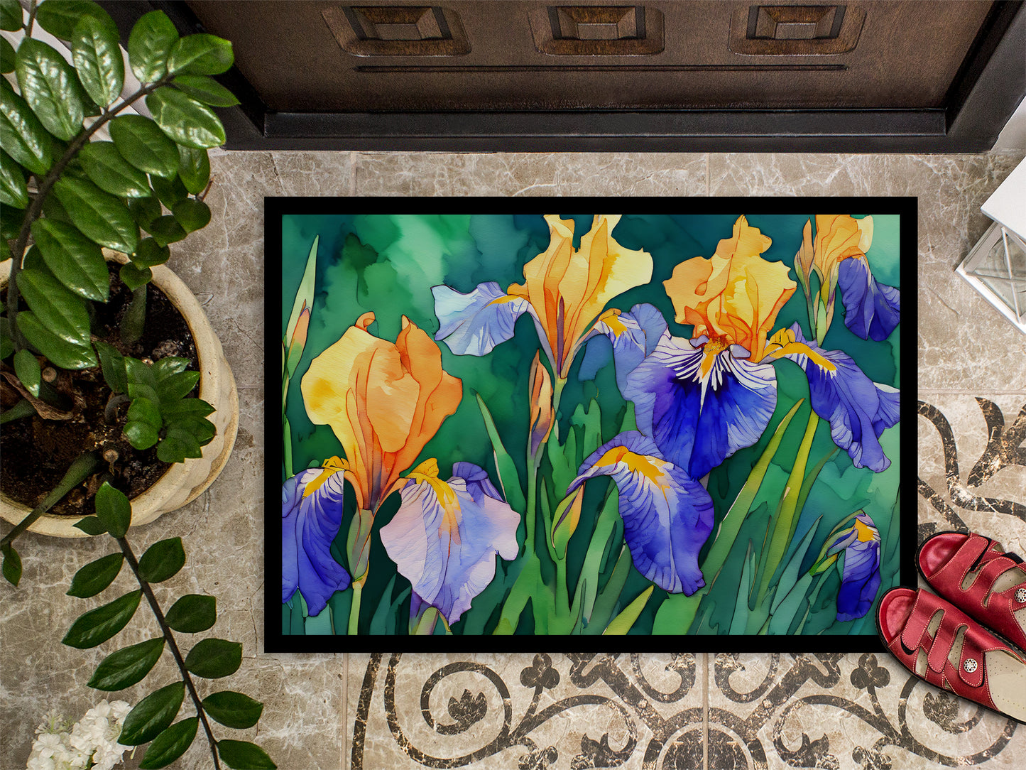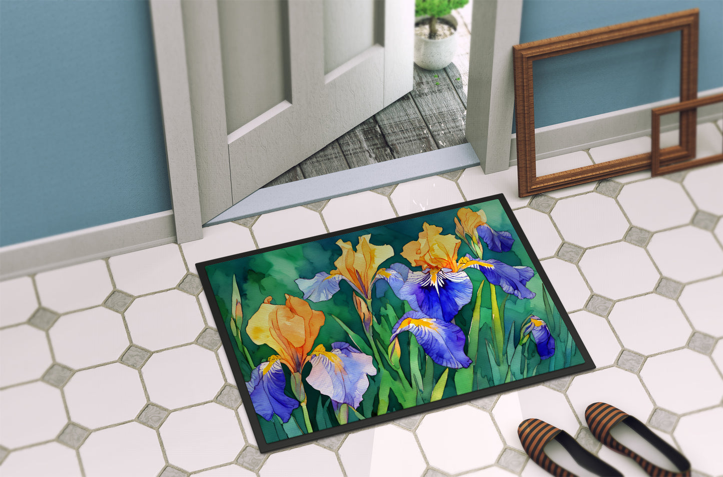 Doormat featuring breed specific Tennessee Iris artwork. Welcome your guests in style with our Artwork Door Mat, designed to withstand almost any weather condition. This mat, measuring approximately 18 by 27 inches, is held together by durable black binding tape. Its top layer, composed of polyester felt, is dyed with the eye-catching image you see on the mat. A few layers below provide the mat with stability, while its rubber bottom is stamped to help prevent slipping and ensures safety. Our mat works wonderfully as both an indoor or outdoor door mat. For cleaning, simply hose it off with water or use a power washer - no need for any cleaner that produces suds. Avoid scrubbing with a brush, instead, opt for the vacuum on floor setting. Designed manufactured and printed in the USA, this mat is a perfect addition to your porch, outdoor kitchen, entryway, or any indoor space. Its unique design makes it a charming decorative rug that greets your guests and adds a stylish touch to your home decor.