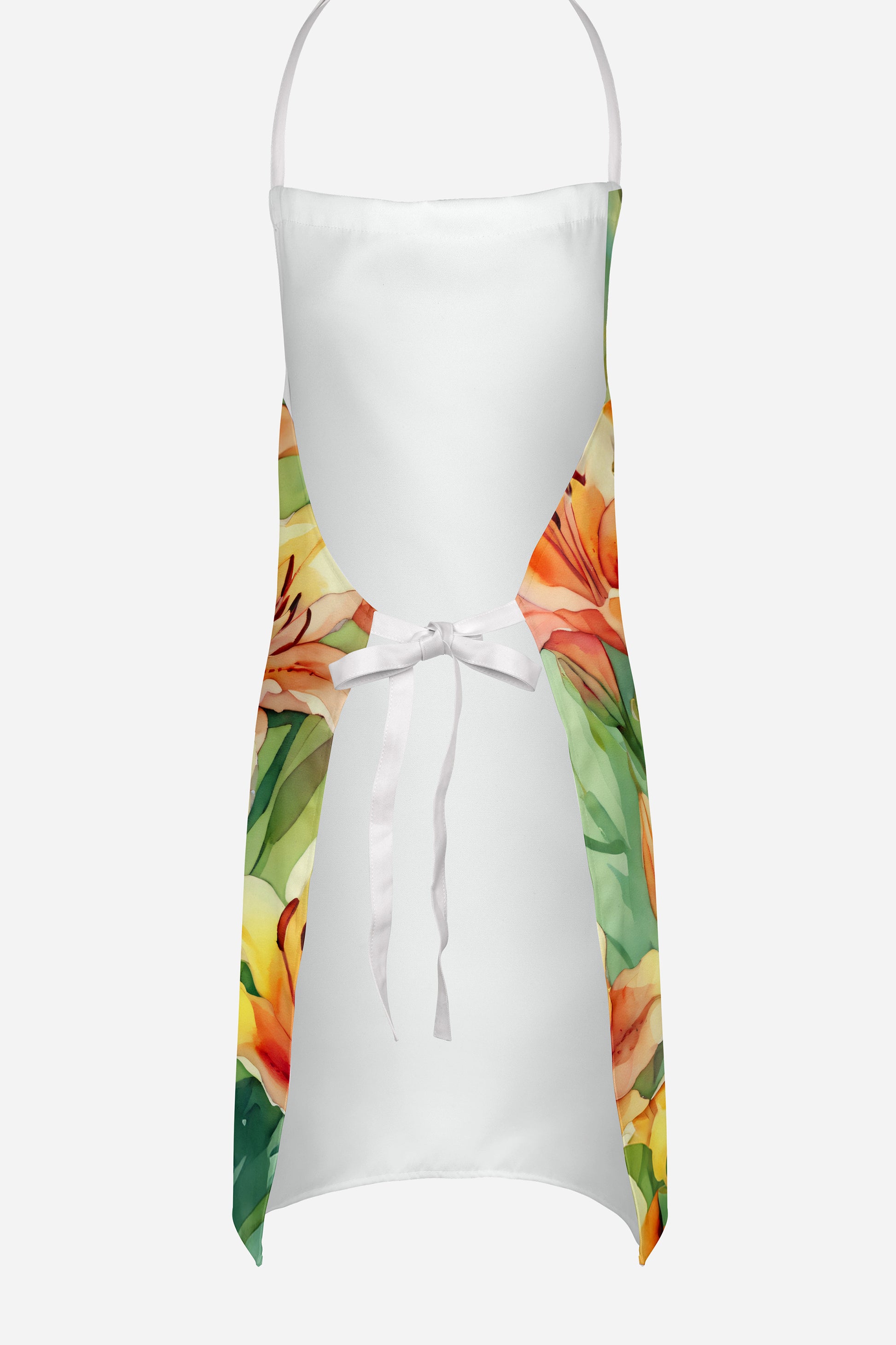 Apron featuring breed specific Utah Sego Lilies artwork. Elevate your cooking, baking, and grilling experiences with our versatile Kitchen or BBQ Apron. This Bib Style apron isn't just limited to culinary activities - it also serves as an excellent baking apron, artist apron, server apron, gardening apron, or even a dog grooming apron. The apron showcases vibrant full-color artwork contributed by one of our talented artists, bringing a dash of style to your daily tasks. With dimensions of approximately 27"W x 30"H, it provides ample coverage to protect your clothing from spills and splashes. Our apron is meticulously crafted from 100% Ultra Spun Polyester, known for its durability and lightweight nature. The apron comes with white tie straps, ensuring a comfortable and adjustable fit for all. It's a perfect choice for kitchen apron enthusiasts, whether you are a woman or a man. Designed for easy maintenance, this apron is fully machine washable. The quick-drying polyester material actively reduces staining, keeping your apron looking fresh and new for longer. Our beautifully designed apron isn't just a functional kitchen accessory - it's a fashion statement in the culinary world!