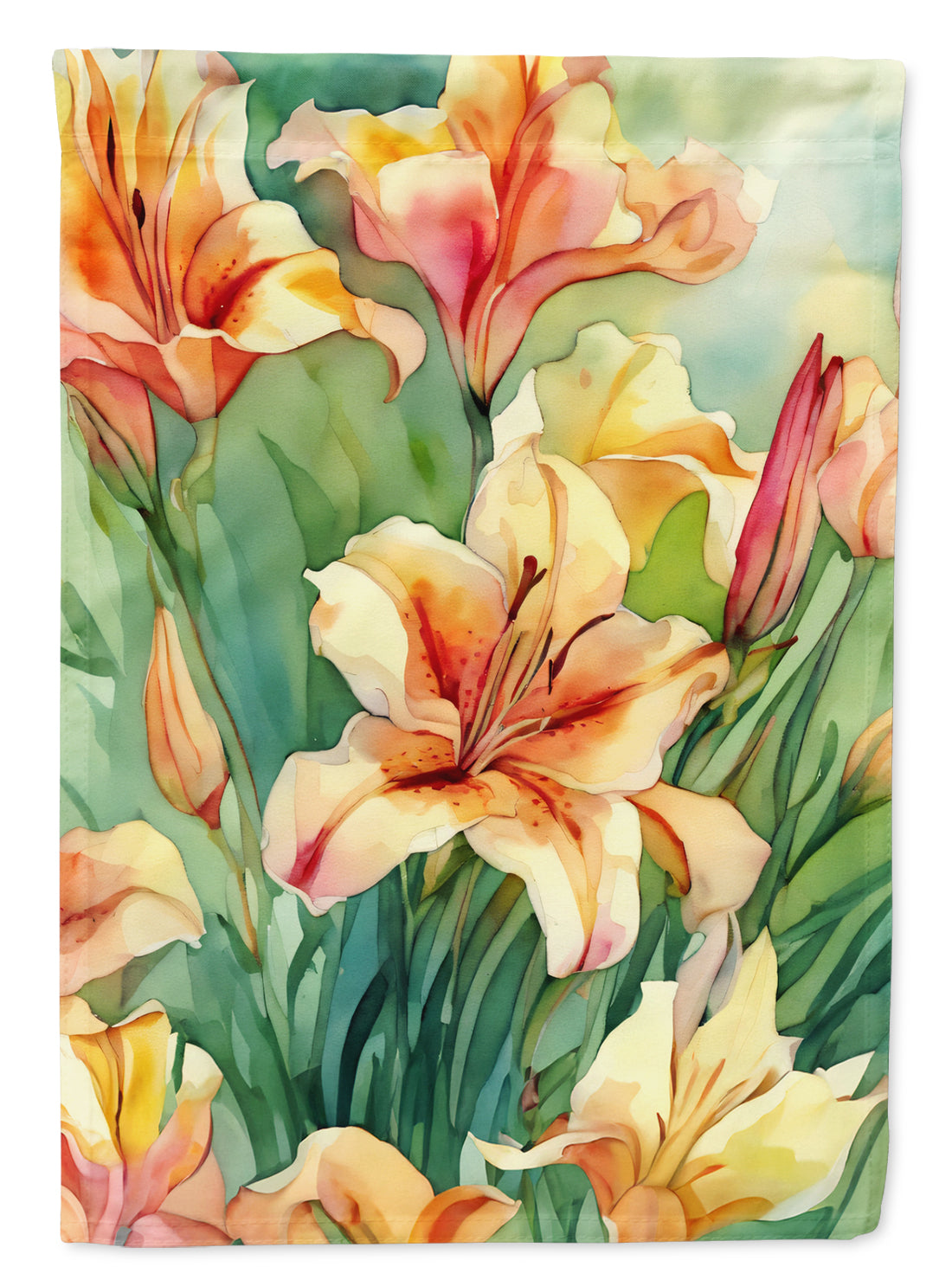 Garden Flag featuring breed specific Utah Sego Lilies artwork. Enhance the beauty of your garden, patio, or yard with Caroline's Treasures Decorative Garden Flag, proudly made in the USA. Crafted from two pieces of thick, double-sided polyester fabric, this 2-ply garden flag is designed to withstand various weather conditions, making it water-resistant and weatherproof. Featuring correctly readable words on both sides, this garden flag offers a delightful visual experience from any angle. With its heavier weight, it stands out among other garden flags, ensuring stability and durability even in wind, rain, and snow. Measuring approximately 11 1/4 inches by 15 1/2 inches, this flag allows you to personalize your outdoor decor. It comes with a 1 1/2-inch sleeve sewn in, allowing easy attachment to any standard garden flag stand or garden size porch hanger (sold separately). Make a statement in your outdoor space with Caroline's Treasures Decorative Garden Flag, a vibrant and high-quality flag that adds color and personality to your surroundings. Proudly made in the USA, it's a symbol of quality craftsmanship and attention to detail.