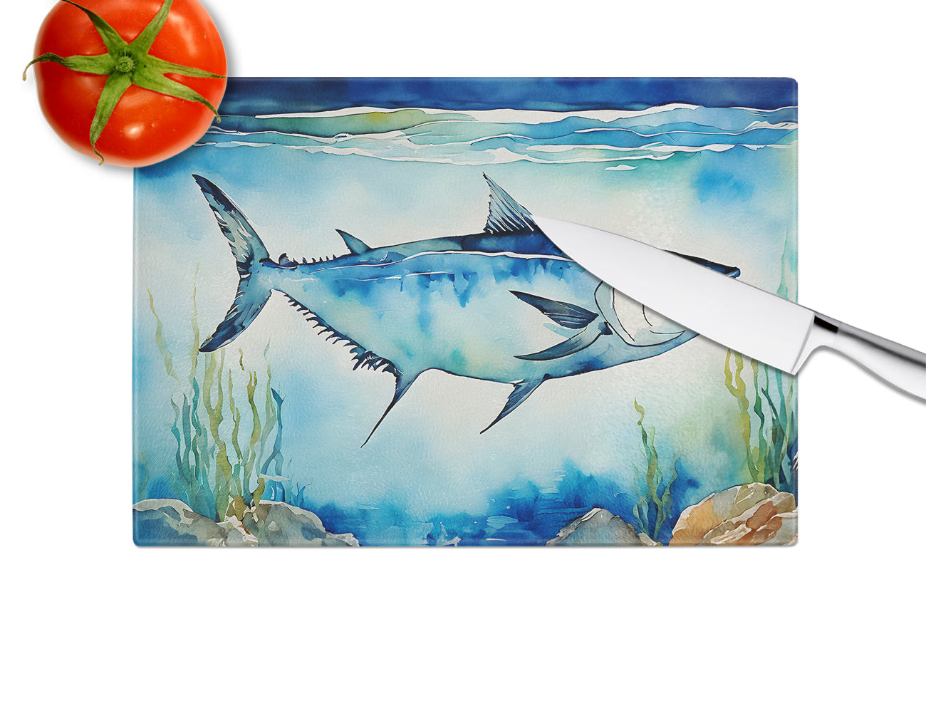 Glass Cutting Board featuring breed specific Bluefin Tuna artwork. Introduce your kitchen to the vibrant, large Decorative Glass Cutting Board from Caroline's Treasures. Crafted from resilient tempered glass, this board is not only a utilitarian necessity but also a colorful art piece. With its generous dimensions of 15 inches in height and 12 inches in length, it offers ample space for all your cutting needs. Every piece showcases captivating artwork from distinguished artists, bringing an aesthetic edge to your kitchen. Beyond its attractive design, this cutting board ensures your countertop stays pristine and unscathed, owing to its heat-resistant properties. Engineered with user convenience in mind, it features non-skid feet for stability, and rounded corners for additional safety. Its robust construction renders it virtually unbreakable, guaranteeing longevity. The board comes with protective feet bumpers, maintaining its position during use. This product is recommended to be hand washed only. Proudly printed and assembled in the United States, this cutting board exemplifies superior craftsmanship. With Caroline's Treasures' Decorative Glass Cutting Board, you're investing in a blend of functionality and artistic flair.