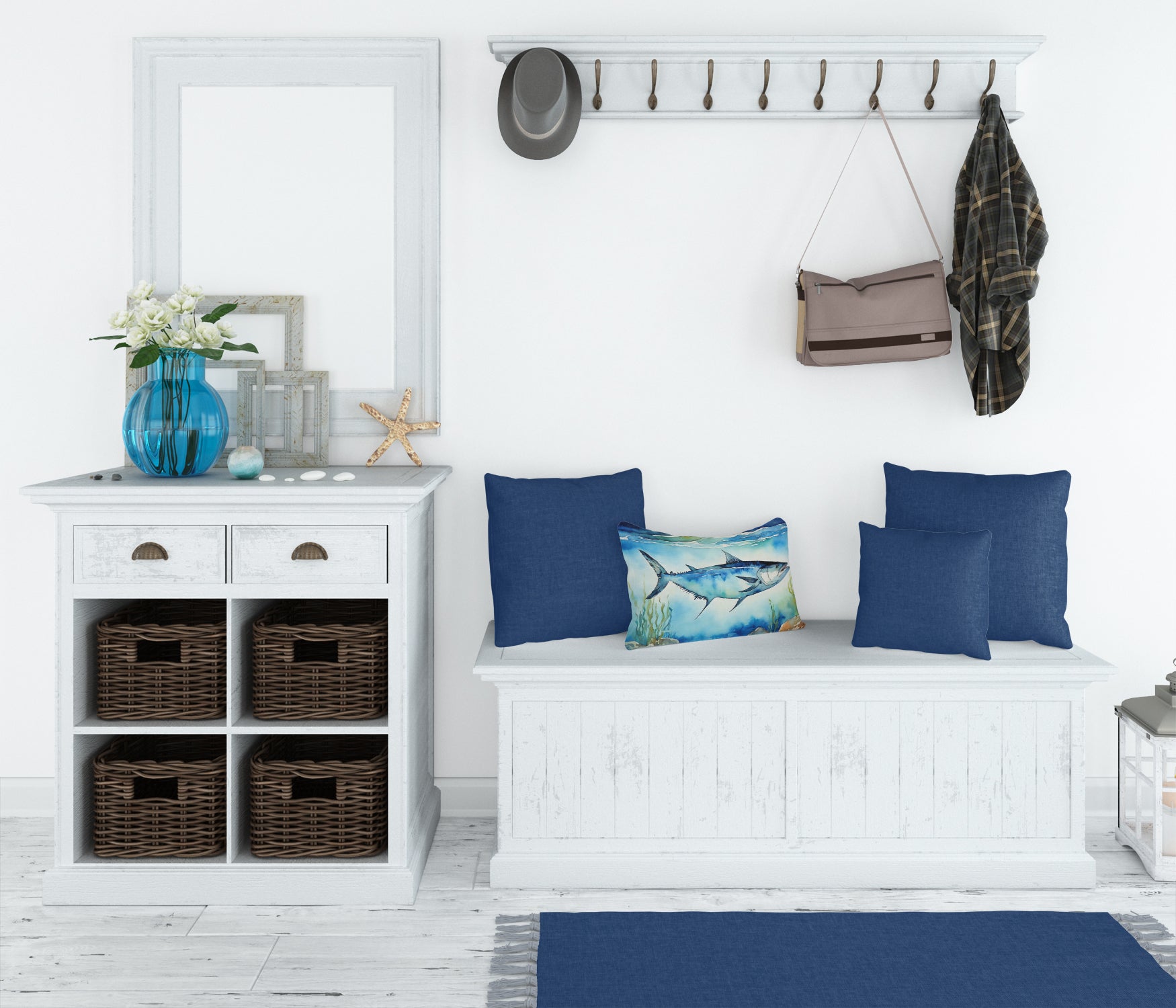 Throw Pillow featuring breed specific Bluefin Tuna artwork. Embrace the fusion of comfort and style with Caroline's Treasures Fabric Decorative Pillow. This 12x16 inch outdoor pillow is designed to complement your patio furniture, adding a splash of color and artistry to your outdoor setting. Constructed with a 100% Polyester Fabric pillow sham filled with a plush pillow form, this cushion is as comfortable as it is durable. Our outdoor pillow utilizes a novel fabric, meticulously woven for enhanced water resistance. This soft canvas material is equally suited for your indoor couch as well as outdoor settings such as the patio, porch, or veranda. To ensure enduring vibrance, we employ colorfast dyes resistant to fading even when subjected to weather elements. The making of this pillow involves the delicate sewing together of three fabric pieces to create a sham, into which a polyester insert is carefully placed. The result is an overstuffed pillow that tenaciously holds its shape. With both the sham and the pillow insert crafted in the United States, these handmade pillows are a testament to superior local craftsmanship. Note that as these pillows are handmade, sizes may slightly vary, enhancing their unique appeal. Enjoy comfort in style with Caroline's Treasures Fabric Decorative Pillow.