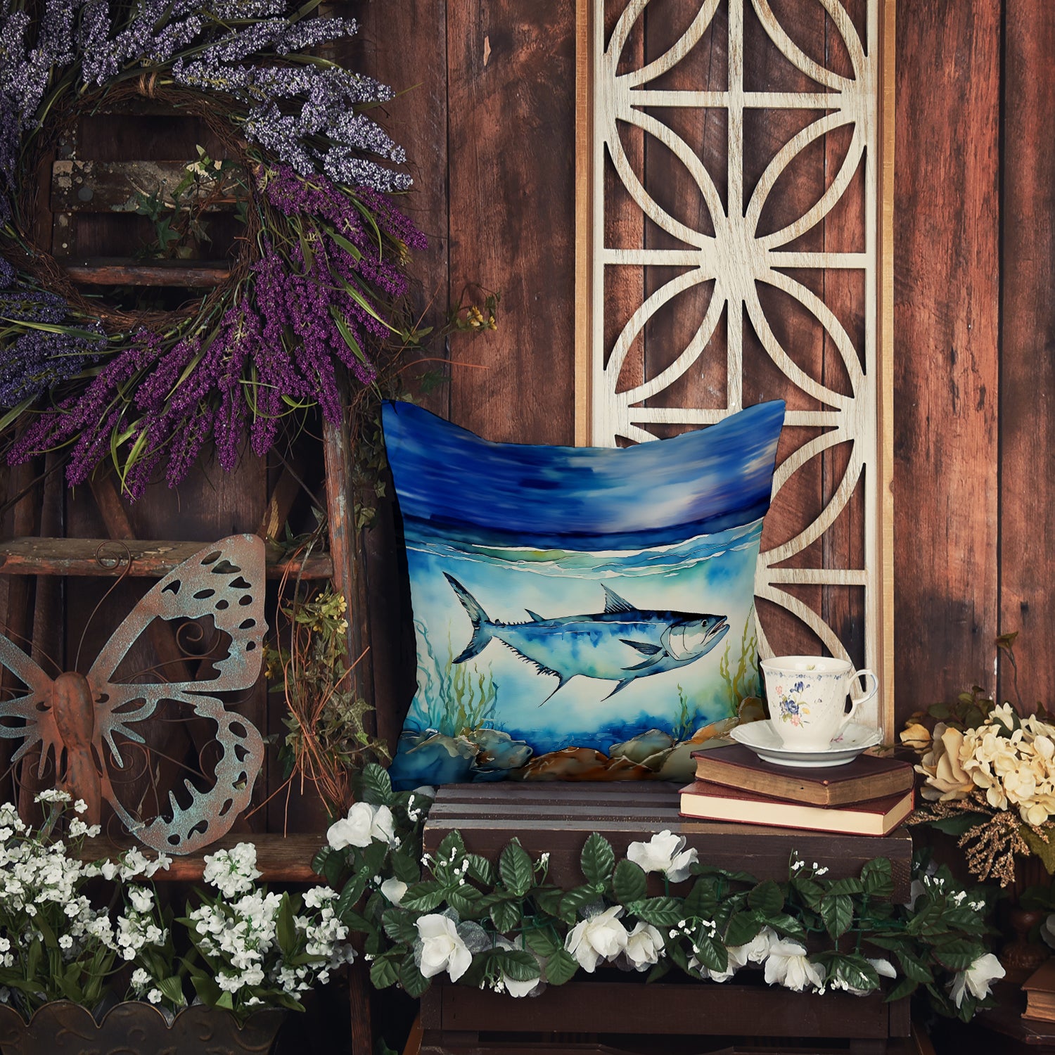 Throw Pillow featuring breed specific Bluefin Tuna artwork. Add a touch of vibrancy and comfort to your outdoor seating with Caroline's Treasures Fabric Decorative Pillow. Measuring approximately 14 inches by 14 inches, this outdoor pillow is crafted to elevate the appeal of your patio furniture, infusing it with vivid color and artistic flair. The pillow includes a 100% Polyester Fabric sham filled with a quality pillow form to provide superior comfort. Innovatively made from our brand new material, specifically woven for its water resistance, this pillow is designed for durability. The soft canvas fabric offers versatility in use, fit for your indoor couch or your outdoor patio, porch, or veranda. The fabric is dyed with colorfast dyes built for resilience against weather conditions, ensuring the pillow retains its beauty over time. Constructed by sewing three fabric pieces to create a sham, the polyester insert is then nestled inside to form the pillow, resulting in an overstuffed pillow that maintains its shape. Both the sham and the pillow insert are proudly made in the United States. As the pillows are handcrafted, there may be minor variations in size, further enhancing their unique charm. Experience comfort in style with Caroline's Treasures Fabric Decorative Pillow.