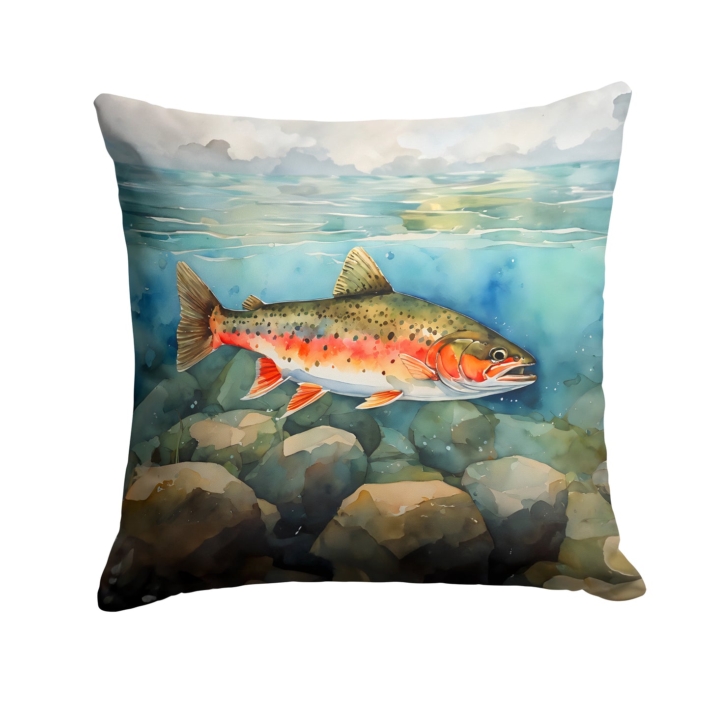 Throw Pillow featuring breed specific Brook Trout artwork. Revitalize your outdoor or indoor living space with Caroline's Treasures 18x18 Fabric Decorative Pillow. With a generously sized dimension of approximately 18 inches by 18 inches, this pillow makes a comfortable and aesthetic addition to any seating area. Made from a unique, water-resistant material developed by Caroline's Treasures, the pillow sham is 100% polyester fabric that's durable and ready to weather any condition. Its vibrant, full-color artwork will not fade over time as it is dyed with color-fast dyes. Whether you place it on your patio furniture, porch, veranda, or indoor couch, its soft canvas fabric ensures a cozy experience. The pillow is handcrafted in the United States, featuring a sham created from three pieces of fabric and a polyester insert for enduring shape and overstuffed comfort. Despite being robustly built to endure the outdoors, it is as soft and snug as your favorite indoor cushions. Please note, as all our pillows are handmade, sizes may vary slightly, adding to the charm of this unique decorative item.