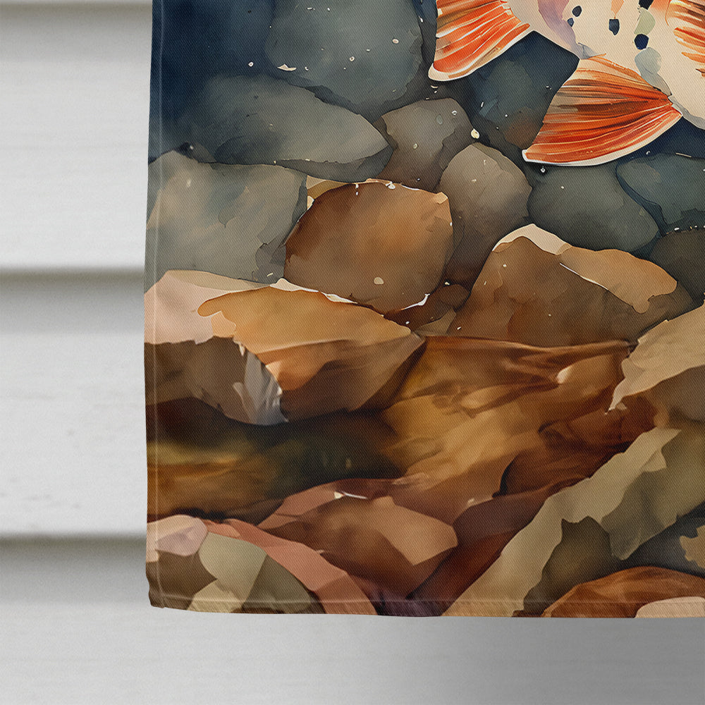 House Flag featuring breed specific Brook Trout artwork. Presenting our Heavy Duty Polyester House Size Decorative Sleeve Pole Flag, a vibrant addition to enhance the aesthetic appeal of your home. This large decorative flag, measuring approximately 28 x 40 inches, offers ample coverage and visibility. Each flag is meticulously sewn and made individually, ensuring a unique piece that may slightly vary in size. It's a sleeve pole flag, designed to fit a standard decorative flag pole effortlessly. Please note that the flag pole and bracket are not included and should be purchased separately. What sets our flag apart is its dual-sided print. The design is mirrored on both sides of the fabric, allowing for uniform visibility regardless of the angle. Printed in full color, our flag showcases vibrant hues that truly stand out. To ensure lasting vibrancy and durability, the dyes are heat-set into the fabric. This ensures your flag remains bright and captivating through various weather conditions. Elevate the look of your home with our Heavy Duty Polyester House Size Decorative Sleeve Pole Flag!