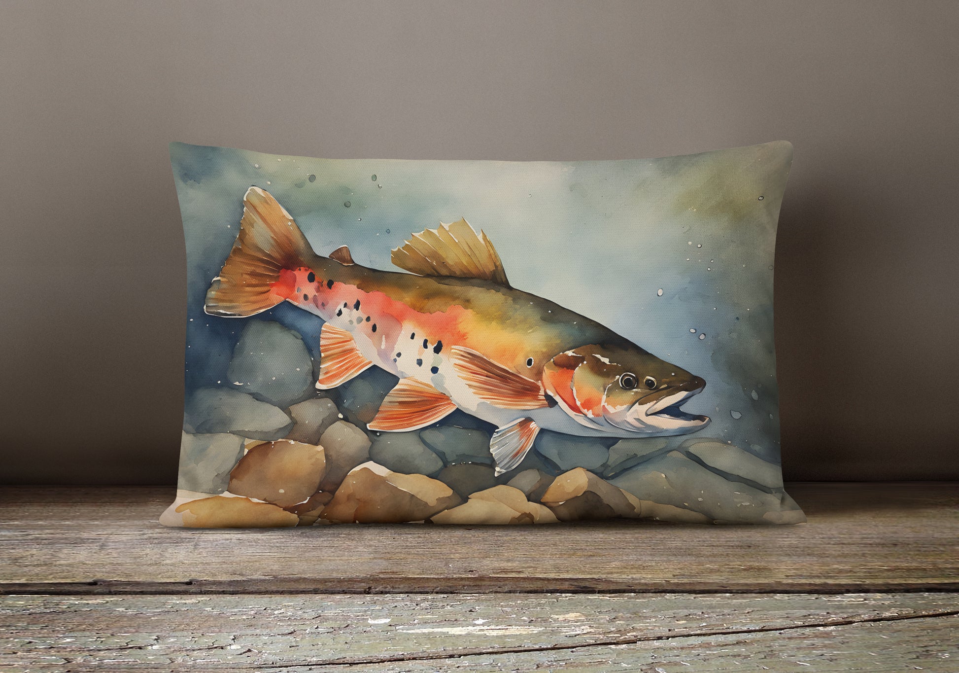 Throw Pillow featuring breed specific Brook Trout artwork. Embrace the fusion of comfort and style with Caroline's Treasures Fabric Decorative Pillow. This 12x16 inch outdoor pillow is designed to complement your patio furniture, adding a splash of color and artistry to your outdoor setting. Constructed with a 100% Polyester Fabric pillow sham filled with a plush pillow form, this cushion is as comfortable as it is durable. Our outdoor pillow utilizes a novel fabric, meticulously woven for enhanced water resistance. This soft canvas material is equally suited for your indoor couch as well as outdoor settings such as the patio, porch, or veranda. To ensure enduring vibrance, we employ colorfast dyes resistant to fading even when subjected to weather elements. The making of this pillow involves the delicate sewing together of three fabric pieces to create a sham, into which a polyester insert is carefully placed. The result is an overstuffed pillow that tenaciously holds its shape. With both the sham and the pillow insert crafted in the United States, these handmade pillows are a testament to superior local craftsmanship. Note that as these pillows are handmade, sizes may slightly vary, enhancing their unique appeal. Enjoy comfort in style with Caroline's Treasures Fabric Decorative Pillow.