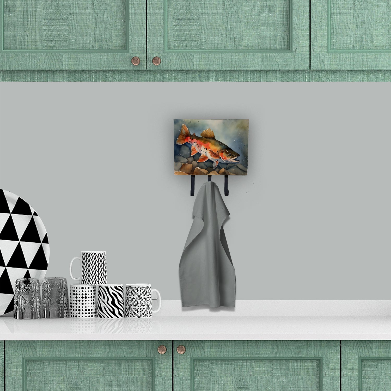 Leash or Key Holder featuring breed specific Brook Trout artwork. Transform your home or office's organization with the Caroline's Treasures Triple Leash or Key Holder. Offering versatility and style, this triple hook holder is perfect for holding keys, leashes, or just about any other small items you need to keep at hand. Crafted with a hardboard tile mounted to a metal rectangle, this holder's structure speaks of durability and reliability. Each hook hangs down about 2.5 inches from the base, providing ample space for hanging your essentials. Despite its robustness, this triple hook holder remains simple to install. It comes with a 1.5-inch long hanger attached to the metal plate, ensuring easy installation with a screw or paneling nail. This holder, measuring 6 x 2 x 9 inches and weighing only 1 lb, is a compact and lightweight solution to your storage needs. Ideal for home or office use, the Caroline's Treasures Triple Leash or Key Holder enhances organization while adding a touch of sophistication to your space.