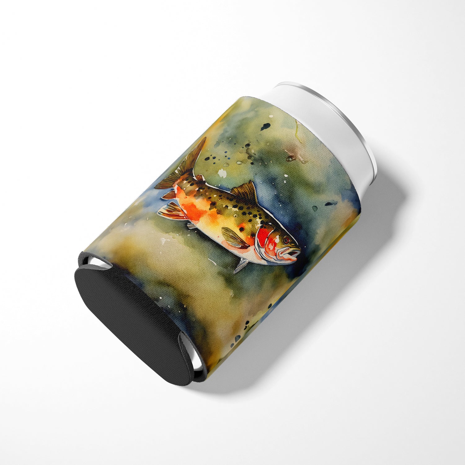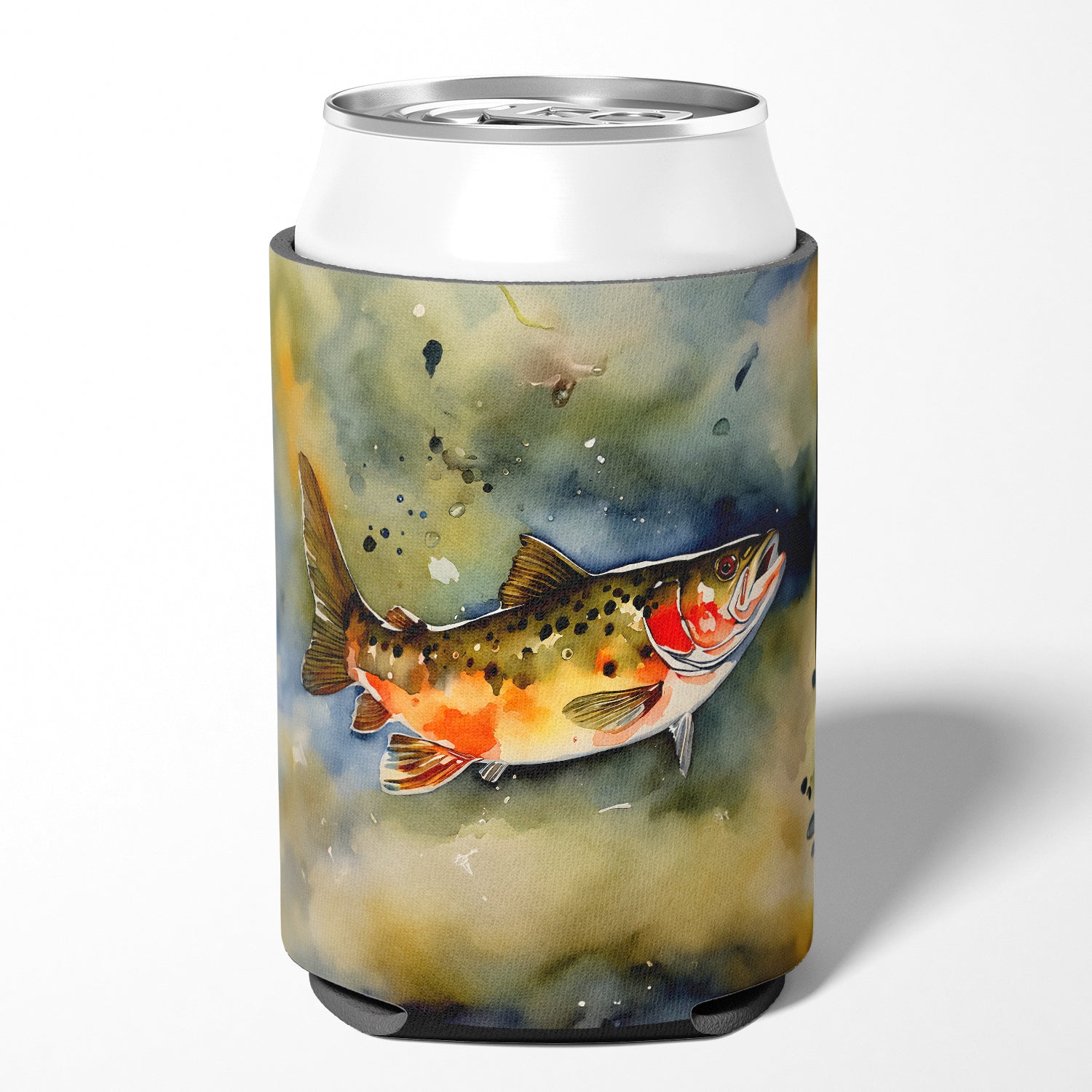 Can or Bottle Hugger featuring breed specific Brook Trout artwork. Introducing our Can or Bottle Hugger, a must-have accessory for your beverage enjoyment. Designed to perfectly fit any standard 12-ounce can, this can cooler is the ideal companion to keep your soda, beer, or any drink of your choice at the perfect temperature. Our can hugger is not just functional, it's a work of art. Featuring full-color artwork that's permanently dyed into the foam, this hugger promises a design that's fade-resistant and made to last, making your beverage stand out in style. The design isn't silk-screened, which ensures the vibrancy of the colors, offering you a long-lasting, appealing aesthetic. What sets our can hugger apart is its high-quality foam fabric, which is not only durable but also machine washable for easy maintenance. Whether you call it a huggie, can coolie, can cozie, or beer holder, this drink sleeve brings style and function together. Proudly designed, printed, and sewn in the USA, our Can or Bottle Hugger is an ideal addition to your beverage experience. Match it with one of our insulated coolers for a complete gift set, adding flair and convenience to your drink enjoyment.