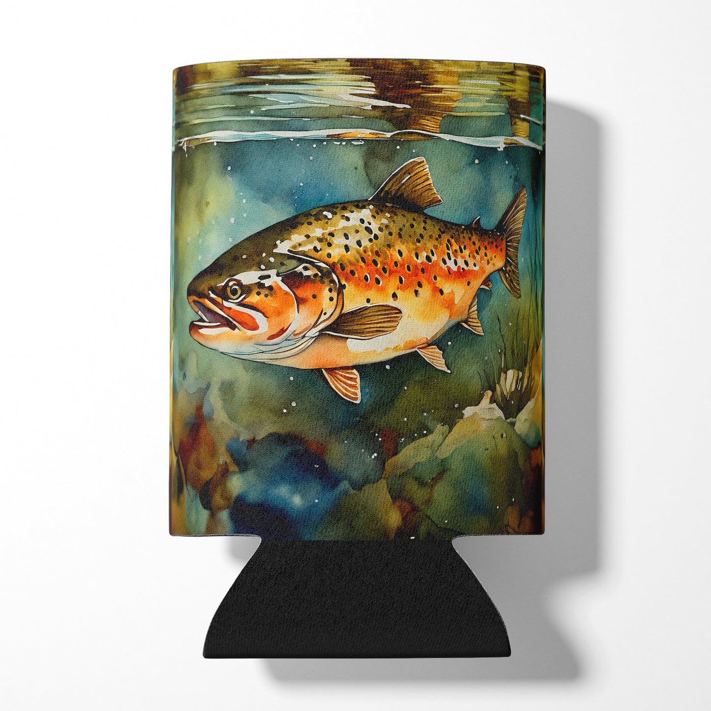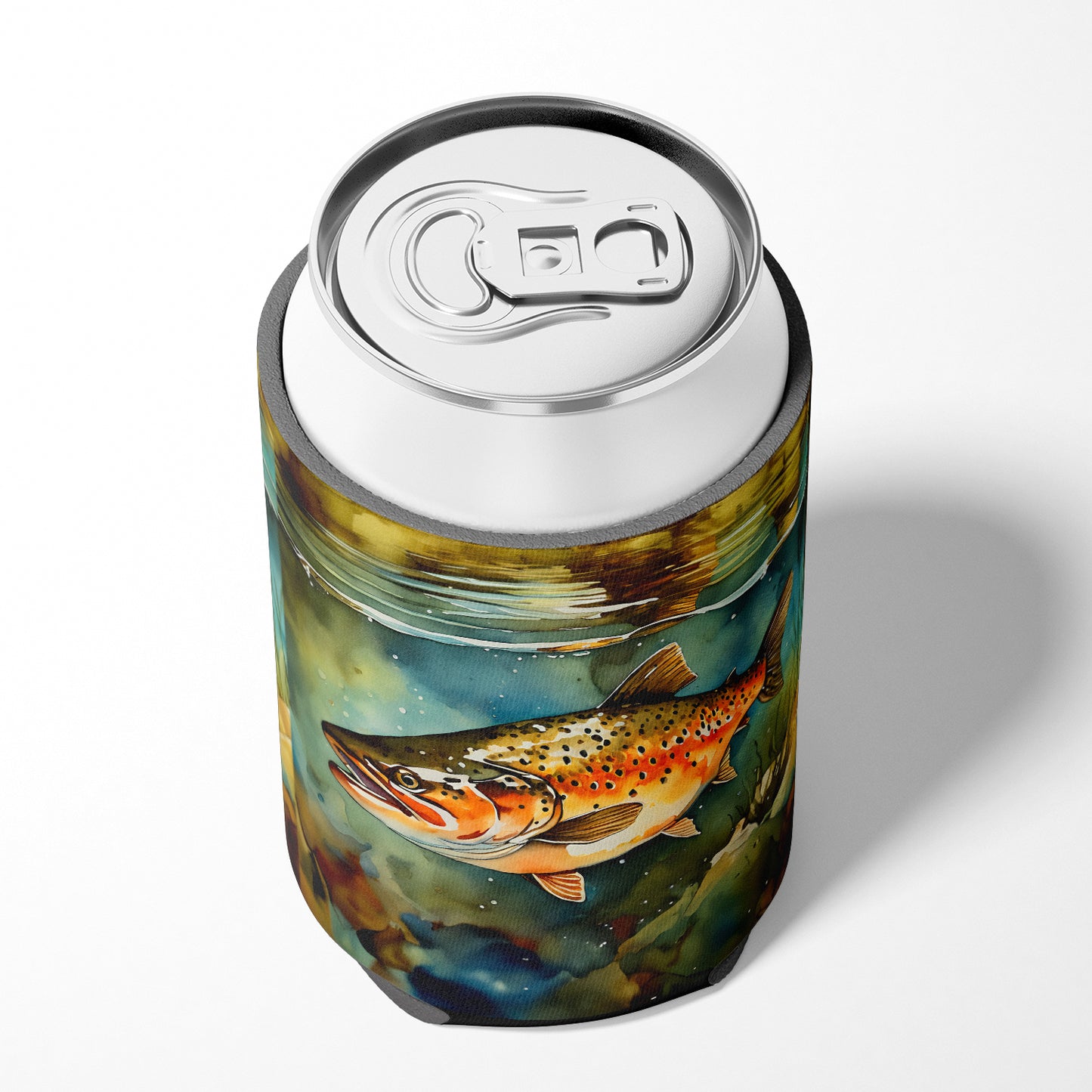 Can or Bottle Hugger featuring breed specific Brown Trout artwork. Introducing our Can or Bottle Hugger, a must-have accessory for your beverage enjoyment. Designed to perfectly fit any standard 12-ounce can, this can cooler is the ideal companion to keep your soda, beer, or any drink of your choice at the perfect temperature. Our can hugger is not just functional, it's a work of art. Featuring full-color artwork that's permanently dyed into the foam, this hugger promises a design that's fade-resistant and made to last, making your beverage stand out in style. The design isn't silk-screened, which ensures the vibrancy of the colors, offering you a long-lasting, appealing aesthetic. What sets our can hugger apart is its high-quality foam fabric, which is not only durable but also machine washable for easy maintenance. Whether you call it a huggie, can coolie, can cozie, or beer holder, this drink sleeve brings style and function together. Proudly designed, printed, and sewn in the USA, our Can or Bottle Hugger is an ideal addition to your beverage experience. Match it with one of our insulated coolers for a complete gift set, adding flair and convenience to your drink enjoyment.