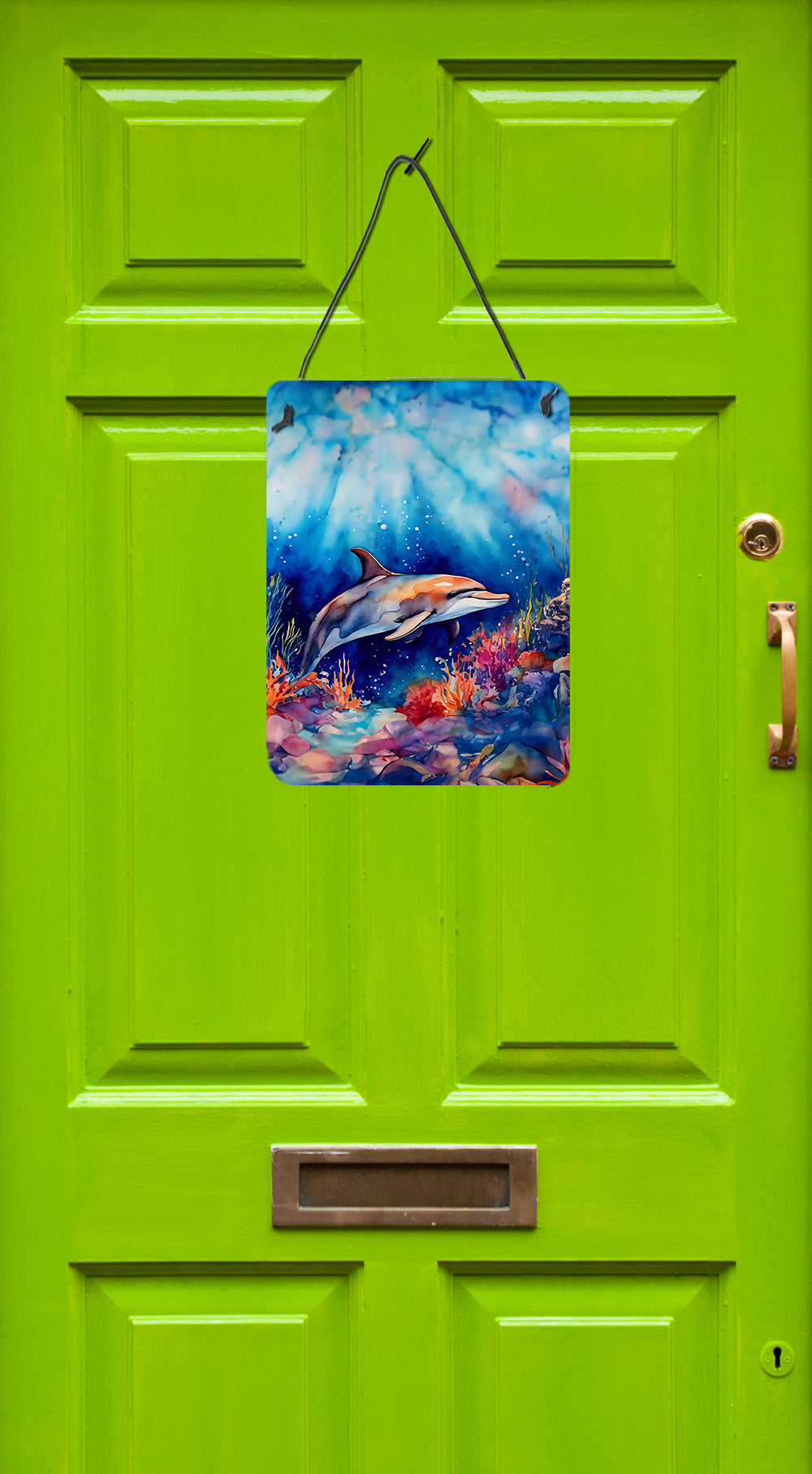 Wall or Door Hanging Prints featuring breed specific Dolphin artwork. Spruce up your space with our Indoor or Outdoor Aluminum Artwork Prints. Designed to brighten your kitchen, bathroom, office, or outdoor areas like patios and porches, these prints offer a unique way to decorate your home or workspace. Measuring 12 by 16 inches, the prints are vibrant, full color, and bring an element of artistry to any setting. What makes these prints special is their durability and resistance to the elements. If placed outside, they can withstand direct sunlight for a considerable time before showing signs of fading. Crafted from rust and fade-resistant aluminum, these prints are built to last and maintain their vibrant colors. Each print comes with a black hanging rope and rounded corners for safety. The back of the print showcases a brushed silver color, adding a touch of sophistication. The lightweight design allows easy hanging with virtually any nail or screw, making installation a breeze. Whether indoors or outdoors, these prints add a distinctive touch to any space.