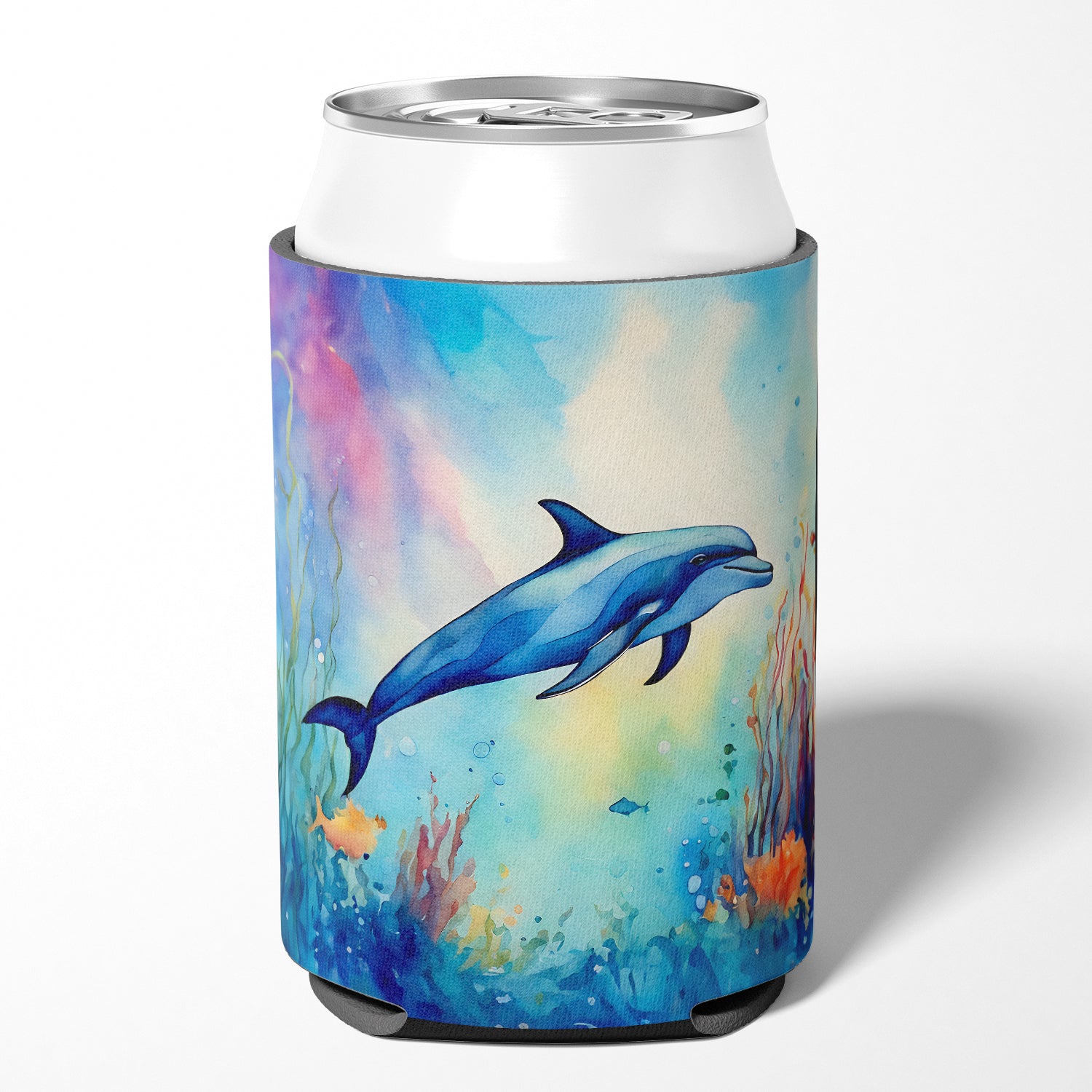 Can or Bottle Hugger featuring breed specific Dolphin artwork. Introducing our Can or Bottle Hugger, a must-have accessory for your beverage enjoyment. Designed to perfectly fit any standard 12-ounce can, this can cooler is the ideal companion to keep your soda, beer, or any drink of your choice at the perfect temperature. Our can hugger is not just functional, it's a work of art. Featuring full-color artwork that's permanently dyed into the foam, this hugger promises a design that's fade-resistant and made to last, making your beverage stand out in style. The design isn't silk-screened, which ensures the vibrancy of the colors, offering you a long-lasting, appealing aesthetic. What sets our can hugger apart is its high-quality foam fabric, which is not only durable but also machine washable for easy maintenance. Whether you call it a huggie, can coolie, can cozie, or beer holder, this drink sleeve brings style and function together. Proudly designed, printed, and sewn in the USA, our Can or Bottle Hugger is an ideal addition to your beverage experience. Match it with one of our insulated coolers for a complete gift set, adding flair and convenience to your drink enjoyment.