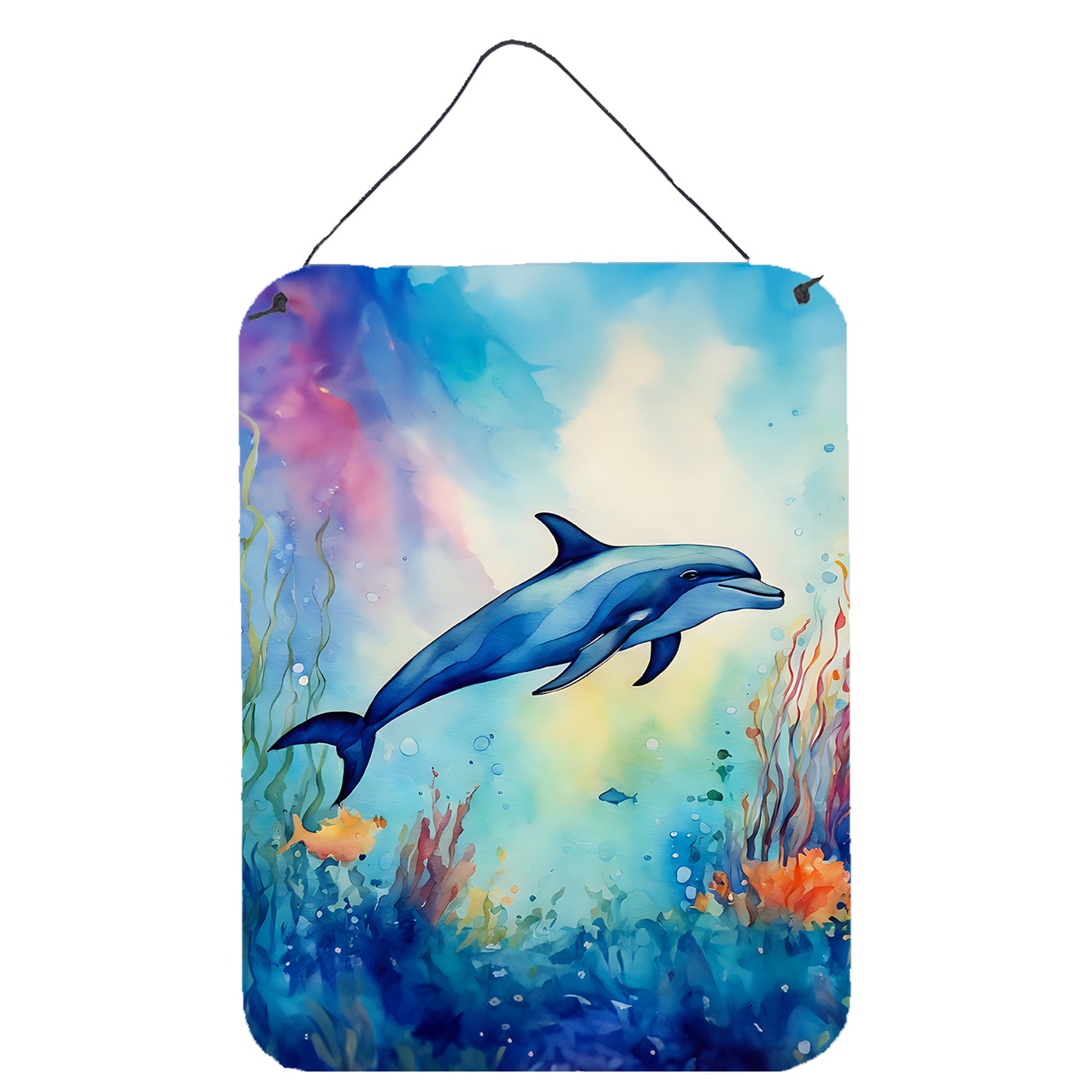 Wall or Door Hanging Prints featuring breed specific Dolphin artwork. Spruce up your space with our Indoor or Outdoor Aluminum Artwork Prints. Designed to brighten your kitchen, bathroom, office, or outdoor areas like patios and porches, these prints offer a unique way to decorate your home or workspace. Measuring 12 by 16 inches, the prints are vibrant, full color, and bring an element of artistry to any setting. What makes these prints special is their durability and resistance to the elements. If placed outside, they can withstand direct sunlight for a considerable time before showing signs of fading. Crafted from rust and fade-resistant aluminum, these prints are built to last and maintain their vibrant colors. Each print comes with a black hanging rope and rounded corners for safety. The back of the print showcases a brushed silver color, adding a touch of sophistication. The lightweight design allows easy hanging with virtually any nail or screw, making installation a breeze. Whether indoors or outdoors, these prints add a distinctive touch to any space.