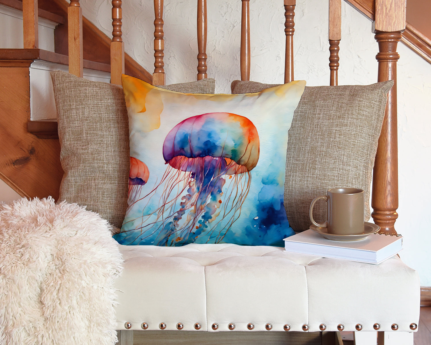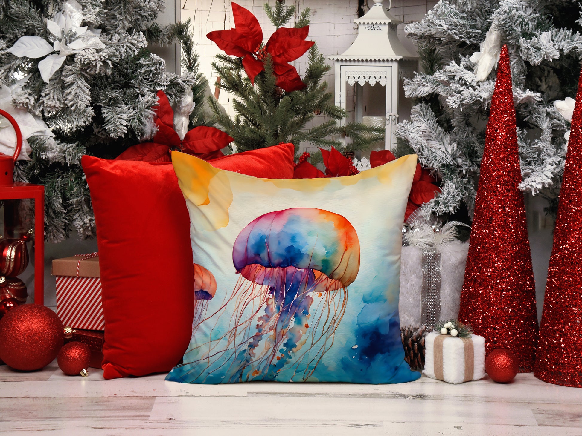 Throw Pillow featuring breed specific Jellyfish artwork. Add a touch of vibrancy and comfort to your outdoor seating with Caroline's Treasures Fabric Decorative Pillow. Measuring approximately 14 inches by 14 inches, this outdoor pillow is crafted to elevate the appeal of your patio furniture, infusing it with vivid color and artistic flair. The pillow includes a 100% Polyester Fabric sham filled with a quality pillow form to provide superior comfort. Innovatively made from our brand new material, specifically woven for its water resistance, this pillow is designed for durability. The soft canvas fabric offers versatility in use, fit for your indoor couch or your outdoor patio, porch, or veranda. The fabric is dyed with colorfast dyes built for resilience against weather conditions, ensuring the pillow retains its beauty over time. Constructed by sewing three fabric pieces to create a sham, the polyester insert is then nestled inside to form the pillow, resulting in an overstuffed pillow that maintains its shape. Both the sham and the pillow insert are proudly made in the United States. As the pillows are handcrafted, there may be minor variations in size, further enhancing their unique charm. Experience comfort in style with Caroline's Treasures Fabric Decorative Pillow.