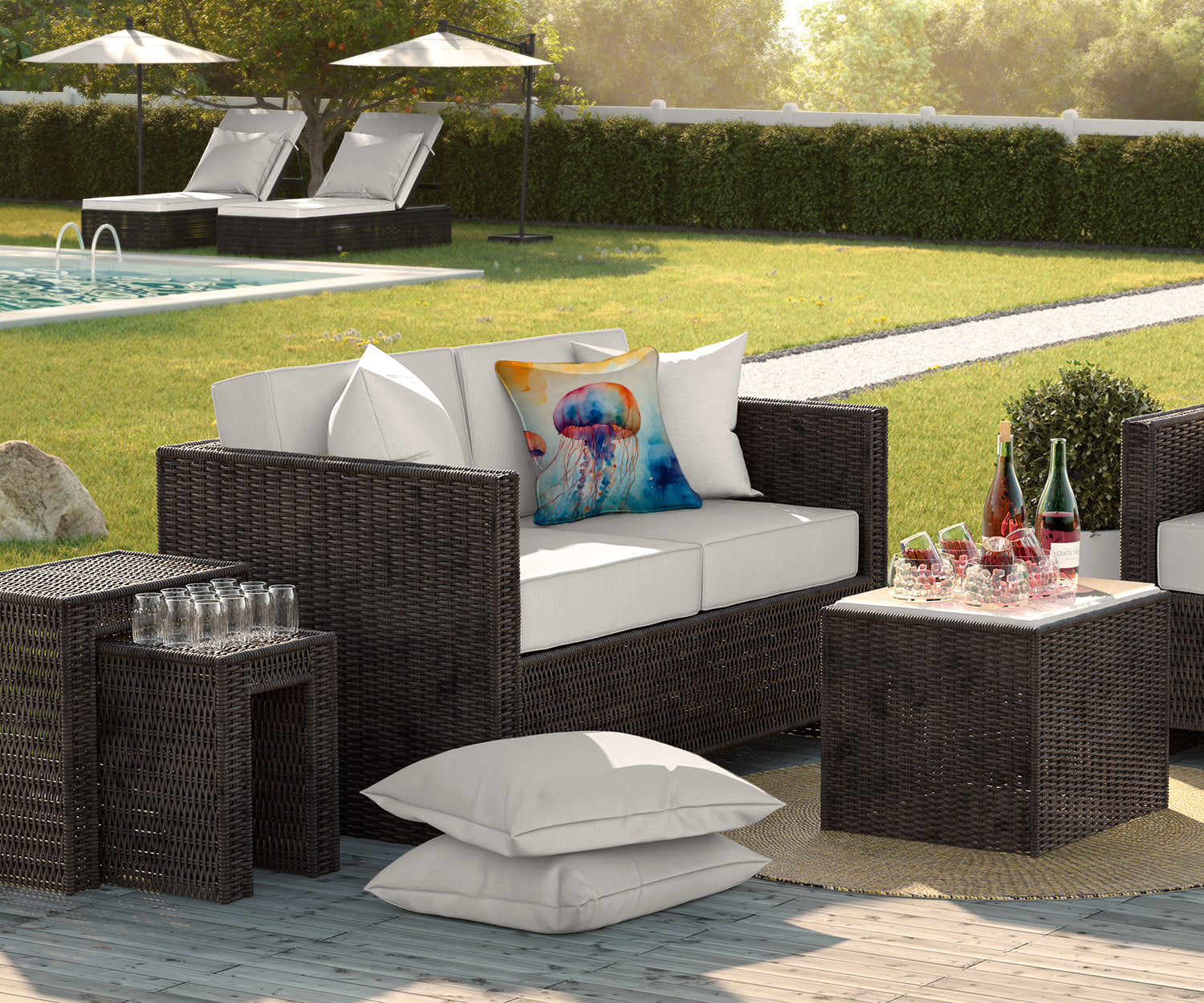 Throw Pillow featuring breed specific Jellyfish artwork. Revitalize your outdoor or indoor living space with Caroline's Treasures 18x18 Fabric Decorative Pillow. With a generously sized dimension of approximately 18 inches by 18 inches, this pillow makes a comfortable and aesthetic addition to any seating area. Made from a unique, water-resistant material developed by Caroline's Treasures, the pillow sham is 100% polyester fabric that's durable and ready to weather any condition. Its vibrant, full-color artwork will not fade over time as it is dyed with color-fast dyes. Whether you place it on your patio furniture, porch, veranda, or indoor couch, its soft canvas fabric ensures a cozy experience. The pillow is handcrafted in the United States, featuring a sham created from three pieces of fabric and a polyester insert for enduring shape and overstuffed comfort. Despite being robustly built to endure the outdoors, it is as soft and snug as your favorite indoor cushions. Please note, as all our pillows are handmade, sizes may vary slightly, adding to the charm of this unique decorative item.