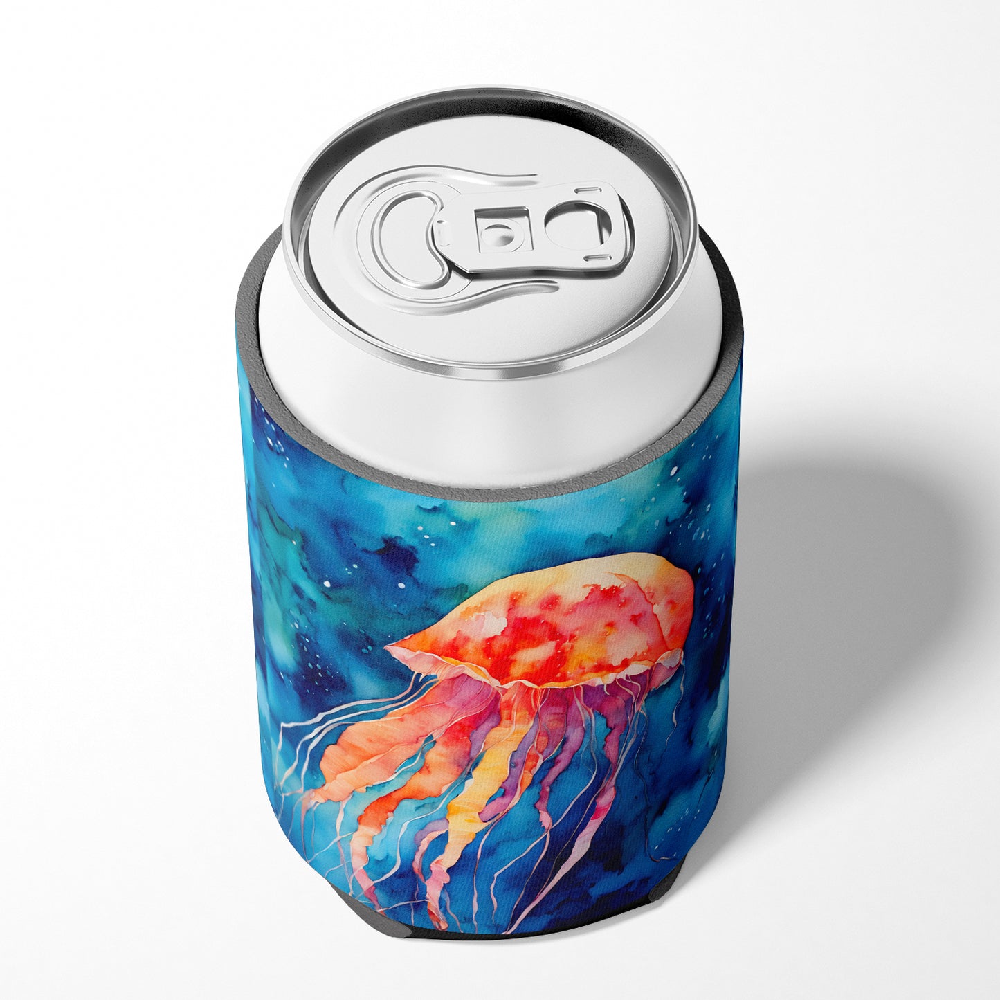 Can or Bottle Hugger featuring breed specific Jellyfish artwork. Introducing our Can or Bottle Hugger, a must-have accessory for your beverage enjoyment. Designed to perfectly fit any standard 12-ounce can, this can cooler is the ideal companion to keep your soda, beer, or any drink of your choice at the perfect temperature. Our can hugger is not just functional, it's a work of art. Featuring full-color artwork that's permanently dyed into the foam, this hugger promises a design that's fade-resistant and made to last, making your beverage stand out in style. The design isn't silk-screened, which ensures the vibrancy of the colors, offering you a long-lasting, appealing aesthetic. What sets our can hugger apart is its high-quality foam fabric, which is not only durable but also machine washable for easy maintenance. Whether you call it a huggie, can coolie, can cozie, or beer holder, this drink sleeve brings style and function together. Proudly designed, printed, and sewn in the USA, our Can or Bottle Hugger is an ideal addition to your beverage experience. Match it with one of our insulated coolers for a complete gift set, adding flair and convenience to your drink enjoyment.