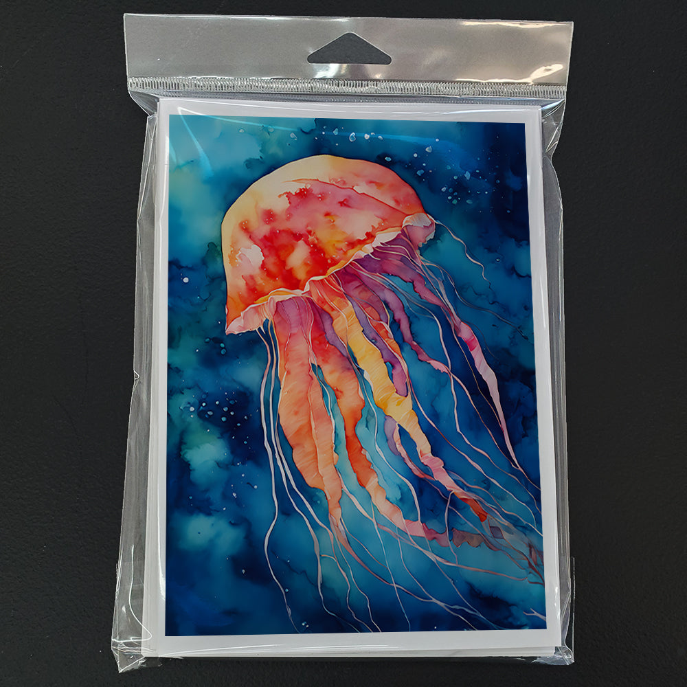 Greeting Cards Pack of 8 featuring breed specific Jellyfish artwork. Celebrate special moments with Caroline's Treasures Printed Greeting Card Pack. This pack includes eight beautifully folded 5x7 cards, accompanied by eight matching white envelopes. With blank interiors, these cards provide ample space for your personalized messages and heartfelt holiday greetings. Each card features captivating full-color artwork, meticulously printed in our facility on high-quality 80 lb cover stock or 216 GSM. The super smooth finish of the white cards enhances the visual impact of the artwork, creating a truly stunning presentation. Designed by our talented in-house artists or licensed artists, the artwork on these cards showcases their creativity and attention to detail. From vibrant illustrations to captivating designs, each card tells its own unique story. Whether it's for birthdays, anniversaries, holidays, or any special occasion, Caroline's Treasures Greeting Card Pack is the perfect way to convey your heartfelt sentiments. Share joy, love, and warm wishes with these exquisite cards and make every moment unforgettable.