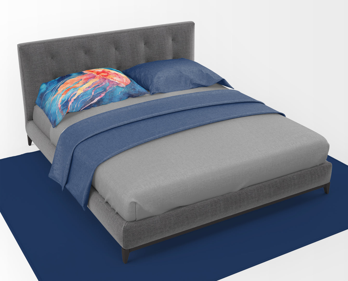 Standard Pillowcase featuring breed specific Jellyfish artwork. Experience an upgrade in your sleeping comfort with our Fabric Standard Pillowcase, designed to balance style, comfort, and practicality. Showcasing vibrant artwork on the front and a standard white on the back, this pillowcase is more than a functional item�it's an expression of your personal style. Crafted from premium moisture-wicking material, our pillowcase ensures a pleasant sleeping experience. The breathable performance fabric allows for excellent air circulation, keeping you cool and comfortable throughout the night while also demonstrating exceptional quality. This pillowcase, measuring 30 x 20.5 inches with a slender 0.15 inch thickness, and weighing only 0.25 lbs, fits a standard pillow perfectly. Maintaining our pillowcase is hassle-free. It requires no ironing�simply wash in cold water and dry at medium heat. Bring art and luxury into your bedroom with our Fabric Standard Pillowcase. Its unique design and top-tier fabric contribute to a relaxing and rejuvenating sleep experience. Brighten your bedroom decor while enhancing your sleep with our high-performance pillowcase.