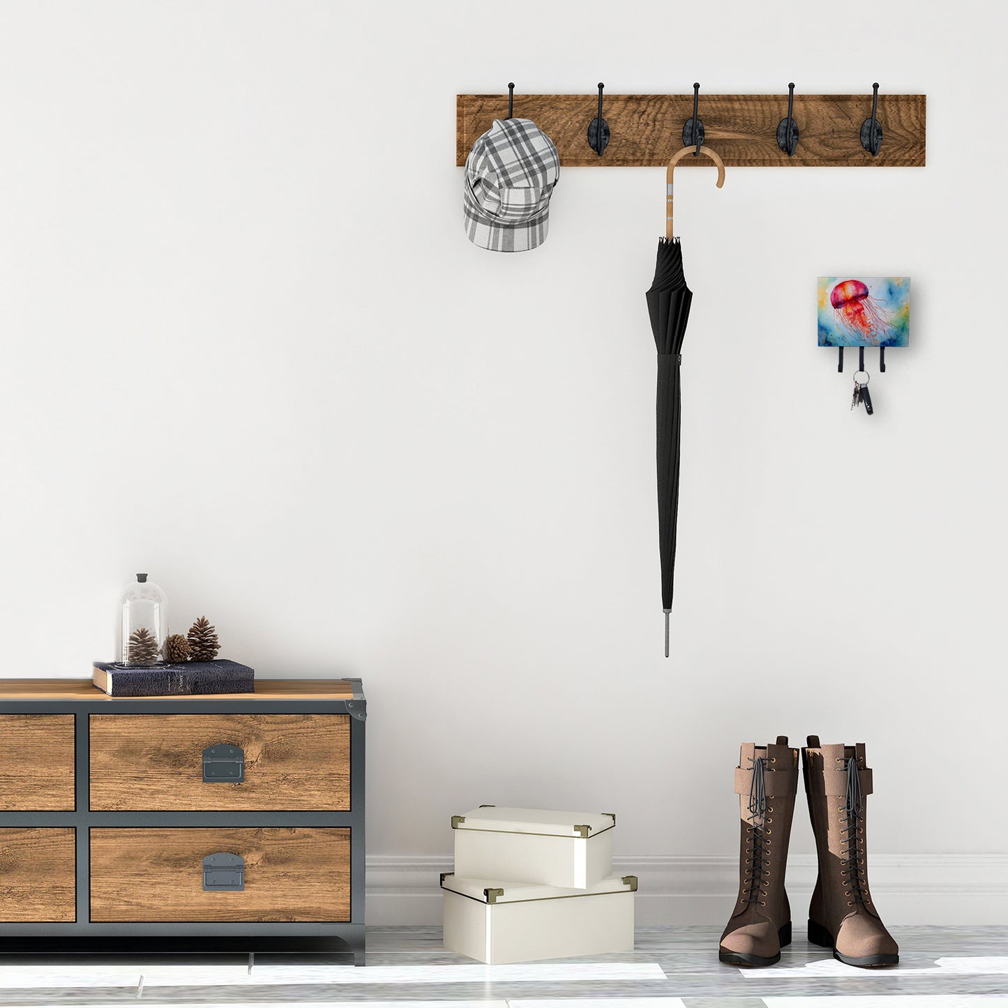 Leash or Key Holder featuring breed specific Jellyfish artwork. Transform your home or office's organization with the Caroline's Treasures Triple Leash or Key Holder. Offering versatility and style, this triple hook holder is perfect for holding keys, leashes, or just about any other small items you need to keep at hand. Crafted with a hardboard tile mounted to a metal rectangle, this holder's structure speaks of durability and reliability. Each hook hangs down about 2.5 inches from the base, providing ample space for hanging your essentials. Despite its robustness, this triple hook holder remains simple to install. It comes with a 1.5-inch long hanger attached to the metal plate, ensuring easy installation with a screw or paneling nail. This holder, measuring 6 x 2 x 9 inches and weighing only 1 lb, is a compact and lightweight solution to your storage needs. Ideal for home or office use, the Caroline's Treasures Triple Leash or Key Holder enhances organization while adding a touch of sophistication to your space.