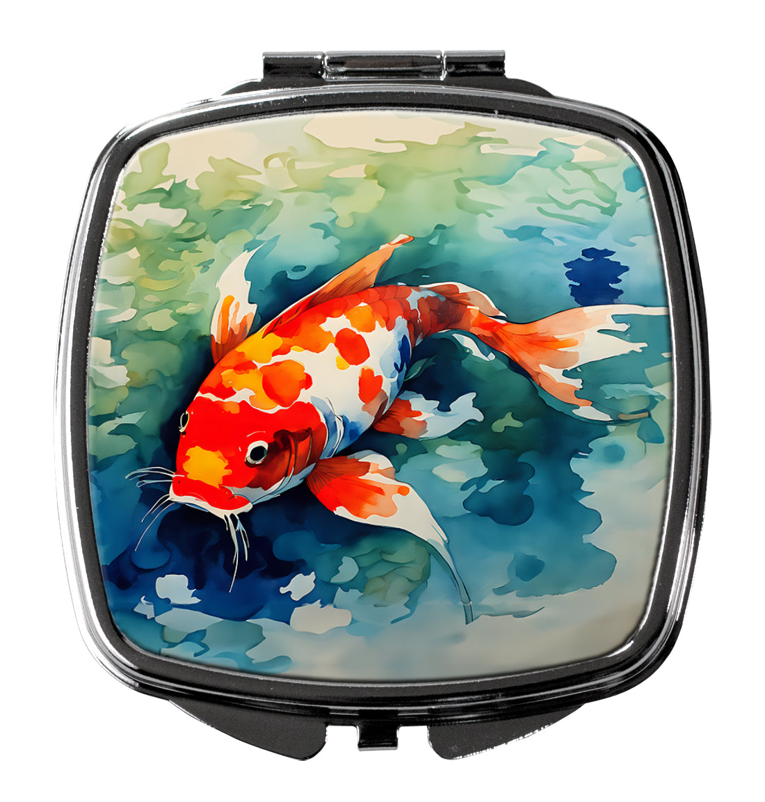 Compact Mirror featuring breed specific Koi Fish artwork. Introducing our Square Compact Mirror, a blend of elegance, functionality, and compactness, perfect for on-the-go touch-ups. This Silvertone metal mirror, with dimensions of 2.75 inches x 3 inches x .3 inches, fits effortlessly into your purse, handbag, or pocket, ensuring that you can check your appearance anytime, anywhere. Our compact mirror stands out with its eye-catching artwork on the front, adding a dash of style to this practical accessory. It is more than just a mirror; it's a statement piece that reflects your personality and aesthetic. When opened, this compact reveals two mirrors inside, doubling your perspective for precise touch-ups. The Silvertone metal construction ensures durability while maintaining a lightweight feel, making it an ideal everyday carry item. Whether you're rushing to a meeting, prepping for a dinner date, or just need a quick check on your look, our Square Compact Mirror is your reliable companion. Experience the perfect blend of style and practicality with this must-have accessory.
