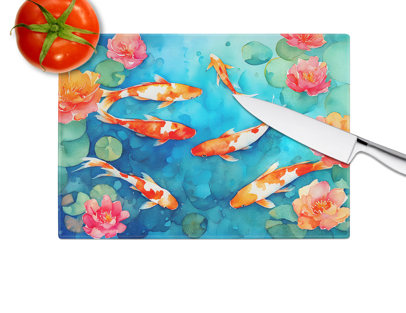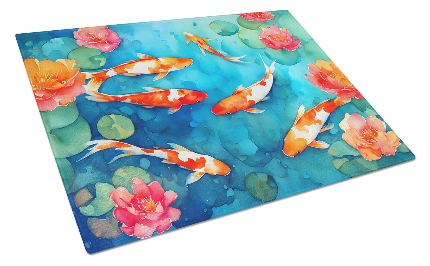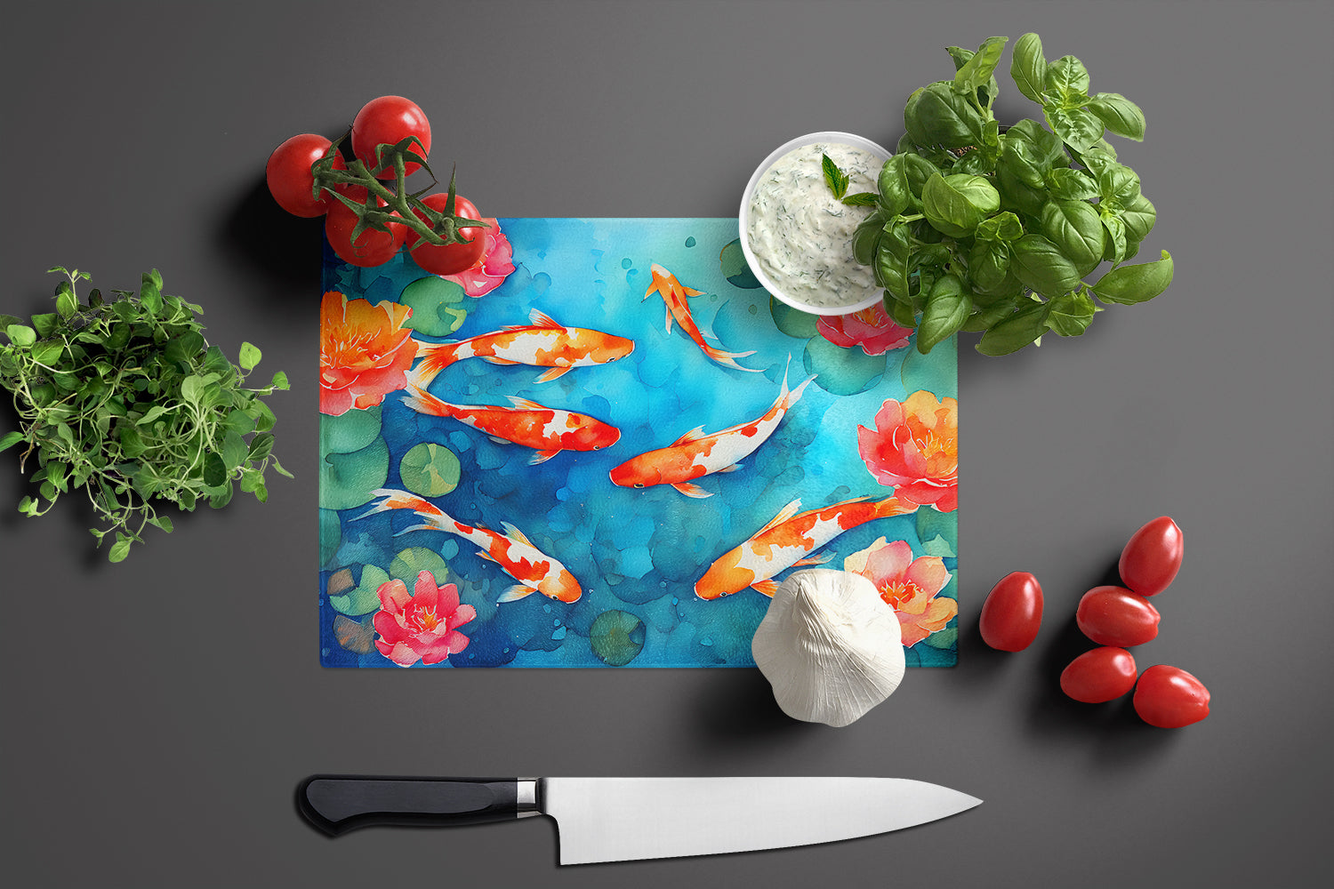 Glass Cutting Board featuring breed specific Koi Fish artwork. Introduce your kitchen to the vibrant, large Decorative Glass Cutting Board from Caroline's Treasures. Crafted from resilient tempered glass, this board is not only a utilitarian necessity but also a colorful art piece. With its generous dimensions of 15 inches in height and 12 inches in length, it offers ample space for all your cutting needs. Every piece showcases captivating artwork from distinguished artists, bringing an aesthetic edge to your kitchen. Beyond its attractive design, this cutting board ensures your countertop stays pristine and unscathed, owing to its heat-resistant properties. Engineered with user convenience in mind, it features non-skid feet for stability, and rounded corners for additional safety. Its robust construction renders it virtually unbreakable, guaranteeing longevity. The board comes with protective feet bumpers, maintaining its position during use. This product is recommended to be hand washed only. Proudly printed and assembled in the United States, this cutting board exemplifies superior craftsmanship. With Caroline's Treasures' Decorative Glass Cutting Board, you're investing in a blend of functionality and artistic flair.