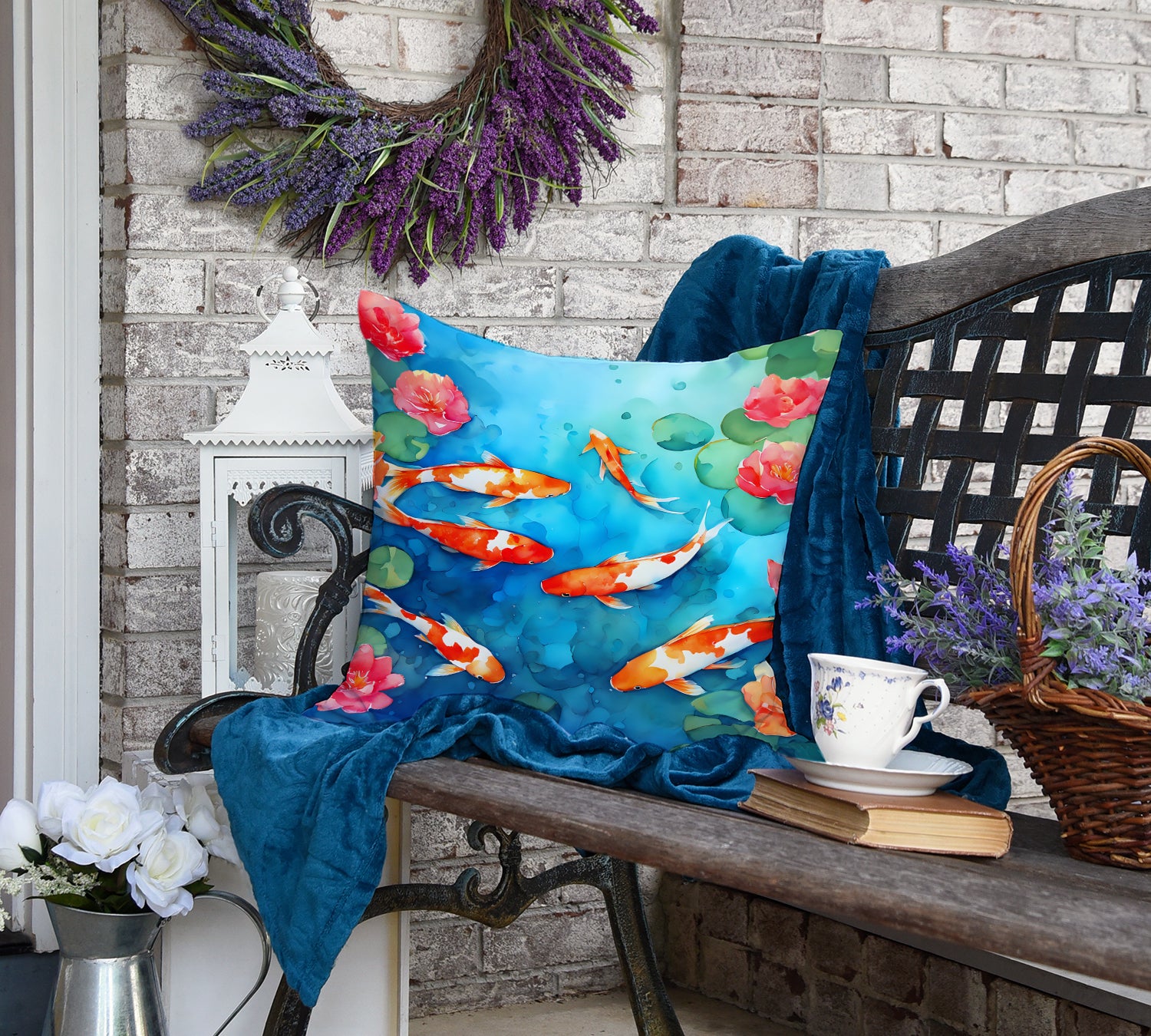 Throw Pillow featuring breed specific Koi Fish artwork. Revitalize your outdoor or indoor living space with Caroline's Treasures 18x18 Fabric Decorative Pillow. With a generously sized dimension of approximately 18 inches by 18 inches, this pillow makes a comfortable and aesthetic addition to any seating area. Made from a unique, water-resistant material developed by Caroline's Treasures, the pillow sham is 100% polyester fabric that's durable and ready to weather any condition. Its vibrant, full-color artwork will not fade over time as it is dyed with color-fast dyes. Whether you place it on your patio furniture, porch, veranda, or indoor couch, its soft canvas fabric ensures a cozy experience. The pillow is handcrafted in the United States, featuring a sham created from three pieces of fabric and a polyester insert for enduring shape and overstuffed comfort. Despite being robustly built to endure the outdoors, it is as soft and snug as your favorite indoor cushions. Please note, as all our pillows are handmade, sizes may vary slightly, adding to the charm of this unique decorative item.