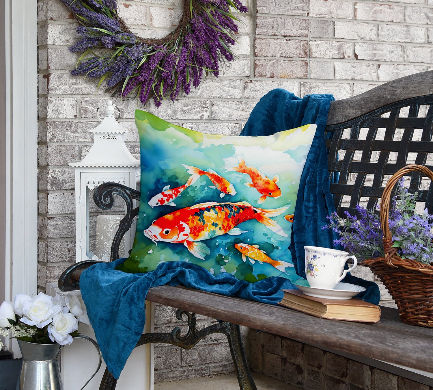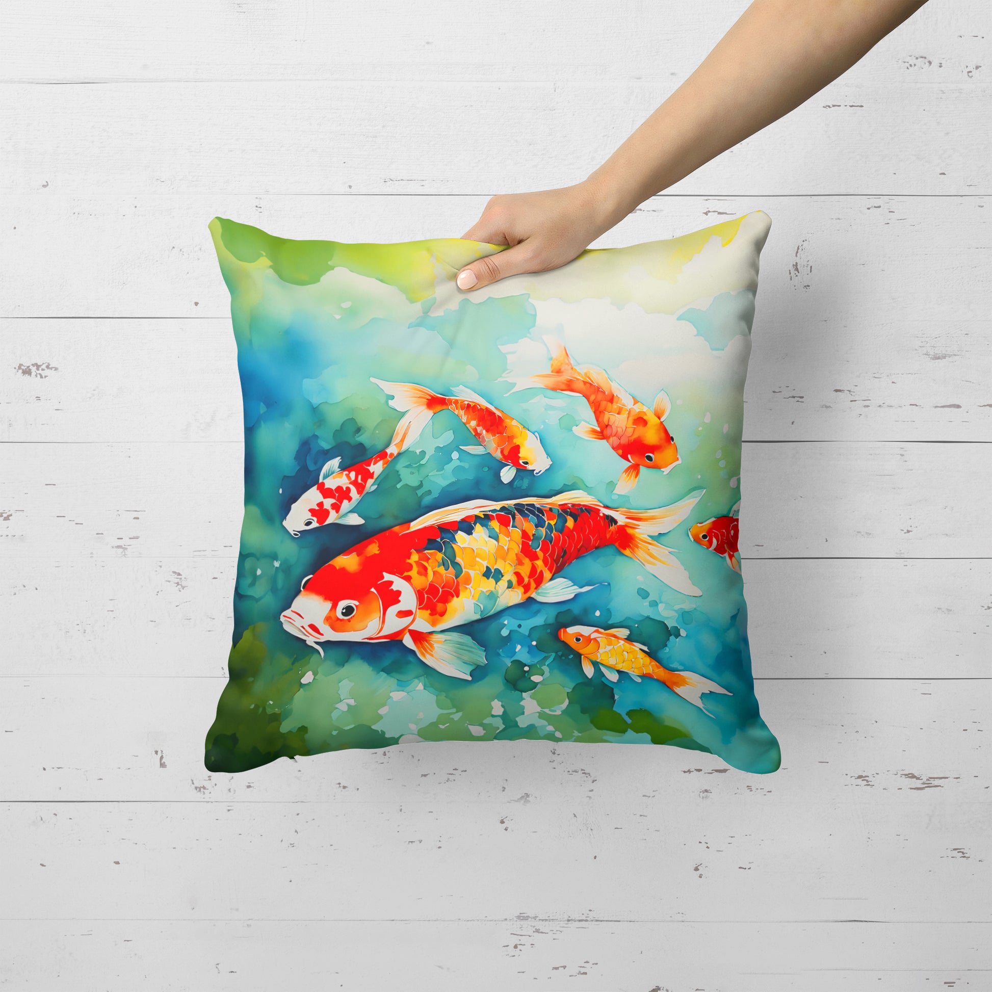 Throw Pillow featuring breed specific Koi Fish artwork. Revitalize your outdoor or indoor living space with Caroline's Treasures 18x18 Fabric Decorative Pillow. With a generously sized dimension of approximately 18 inches by 18 inches, this pillow makes a comfortable and aesthetic addition to any seating area. Made from a unique, water-resistant material developed by Caroline's Treasures, the pillow sham is 100% polyester fabric that's durable and ready to weather any condition. Its vibrant, full-color artwork will not fade over time as it is dyed with color-fast dyes. Whether you place it on your patio furniture, porch, veranda, or indoor couch, its soft canvas fabric ensures a cozy experience. The pillow is handcrafted in the United States, featuring a sham created from three pieces of fabric and a polyester insert for enduring shape and overstuffed comfort. Despite being robustly built to endure the outdoors, it is as soft and snug as your favorite indoor cushions. Please note, as all our pillows are handmade, sizes may vary slightly, adding to the charm of this unique decorative item.