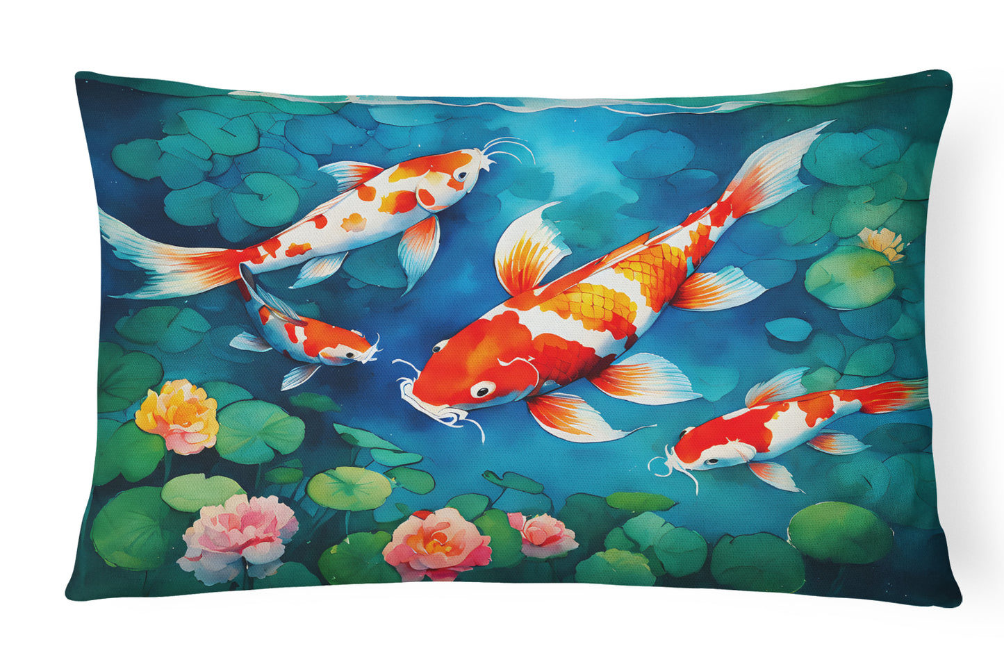 Throw Pillow featuring breed specific Koi Fish artwork. Embrace the fusion of comfort and style with Caroline's Treasures Fabric Decorative Pillow. This 12x16 inch outdoor pillow is designed to complement your patio furniture, adding a splash of color and artistry to your outdoor setting. Constructed with a 100% Polyester Fabric pillow sham filled with a plush pillow form, this cushion is as comfortable as it is durable. Our outdoor pillow utilizes a novel fabric, meticulously woven for enhanced water resistance. This soft canvas material is equally suited for your indoor couch as well as outdoor settings such as the patio, porch, or veranda. To ensure enduring vibrance, we employ colorfast dyes resistant to fading even when subjected to weather elements. The making of this pillow involves the delicate sewing together of three fabric pieces to create a sham, into which a polyester insert is carefully placed. The result is an overstuffed pillow that tenaciously holds its shape. With both the sham and the pillow insert crafted in the United States, these handmade pillows are a testament to superior local craftsmanship. Note that as these pillows are handmade, sizes may slightly vary, enhancing their unique appeal. Enjoy comfort in style with Caroline's Treasures Fabric Decorative Pillow.