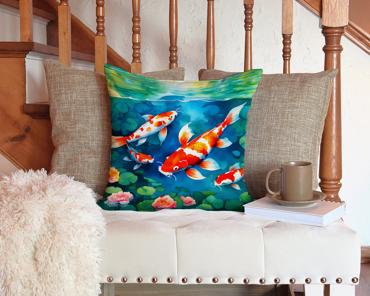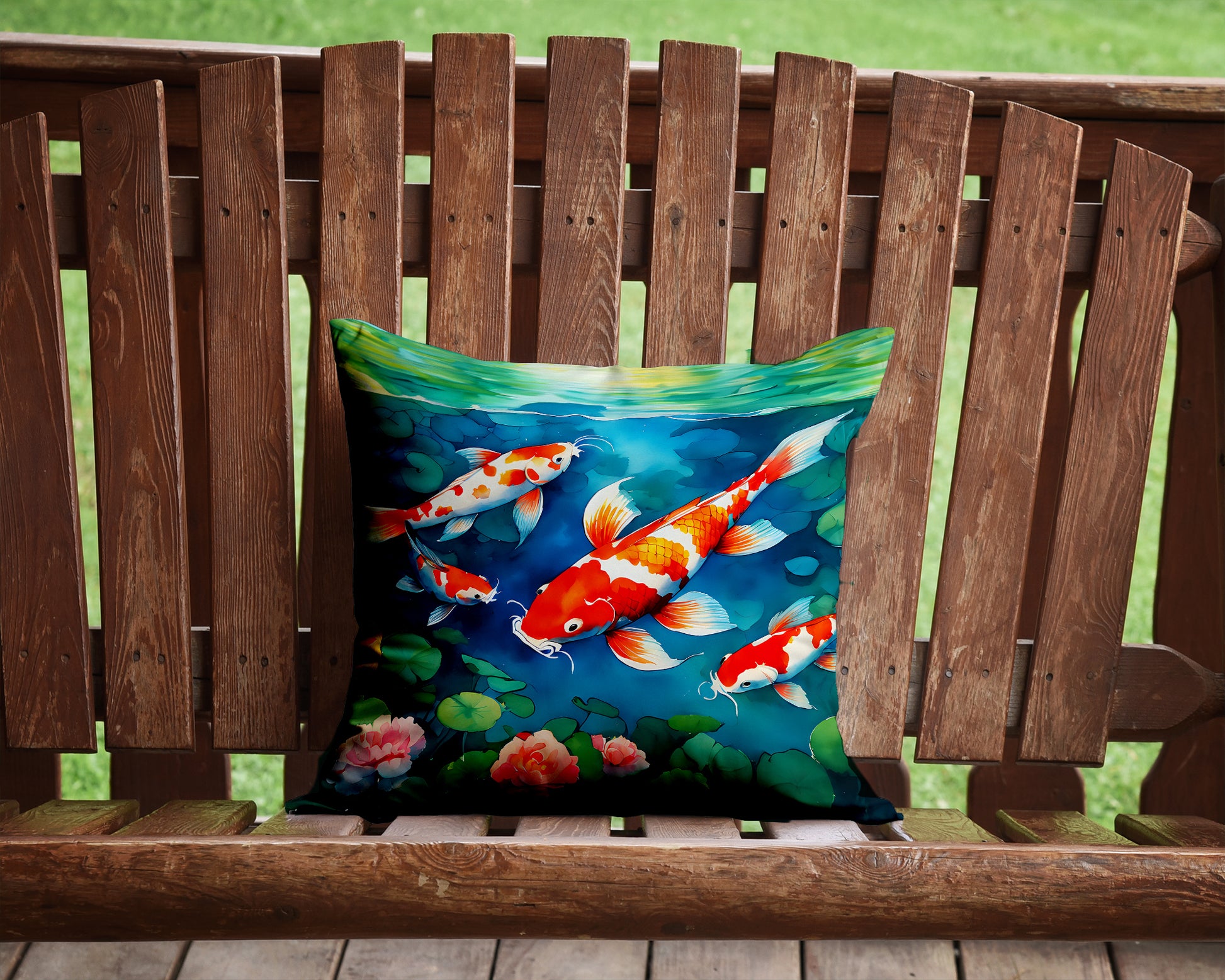 Throw Pillow featuring breed specific Koi Fish artwork. Add a touch of vibrancy and comfort to your outdoor seating with Caroline's Treasures Fabric Decorative Pillow. Measuring approximately 14 inches by 14 inches, this outdoor pillow is crafted to elevate the appeal of your patio furniture, infusing it with vivid color and artistic flair. The pillow includes a 100% Polyester Fabric sham filled with a quality pillow form to provide superior comfort. Innovatively made from our brand new material, specifically woven for its water resistance, this pillow is designed for durability. The soft canvas fabric offers versatility in use, fit for your indoor couch or your outdoor patio, porch, or veranda. The fabric is dyed with colorfast dyes built for resilience against weather conditions, ensuring the pillow retains its beauty over time. Constructed by sewing three fabric pieces to create a sham, the polyester insert is then nestled inside to form the pillow, resulting in an overstuffed pillow that maintains its shape. Both the sham and the pillow insert are proudly made in the United States. As the pillows are handcrafted, there may be minor variations in size, further enhancing their unique charm. Experience comfort in style with Caroline's Treasures Fabric Decorative Pillow.