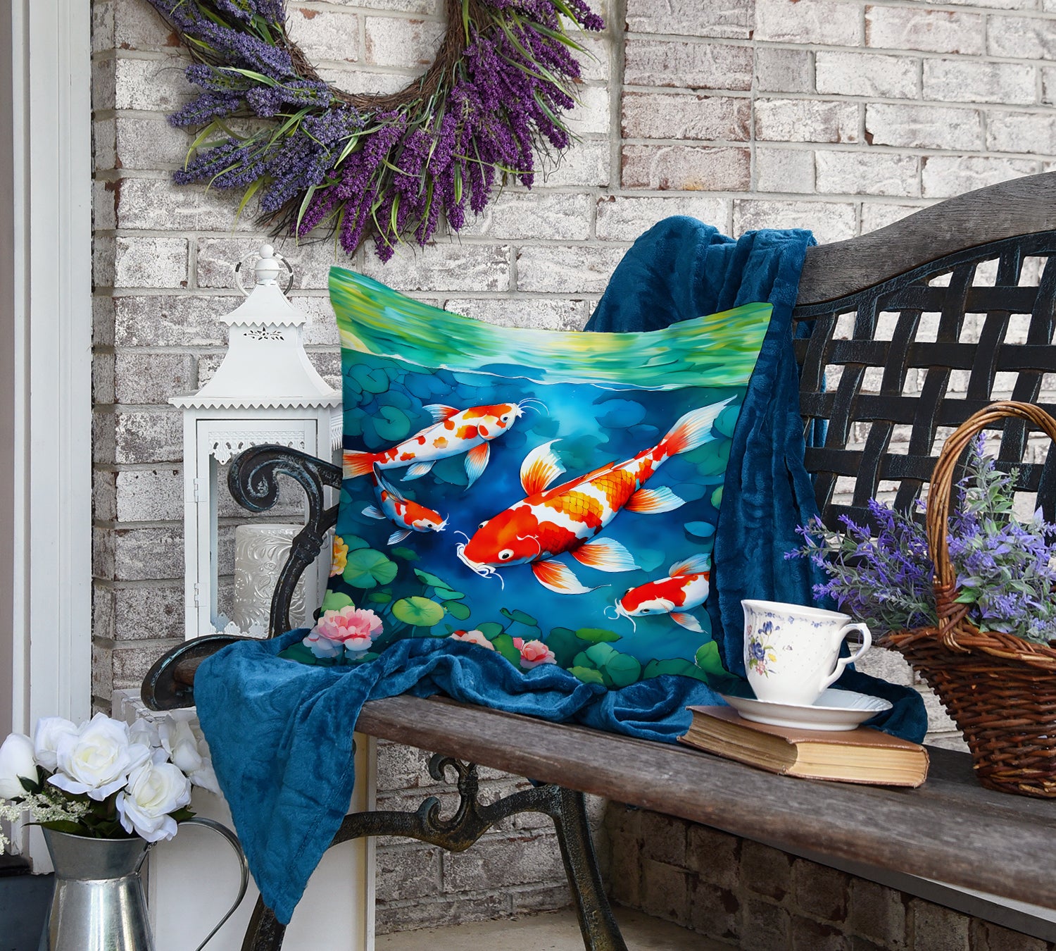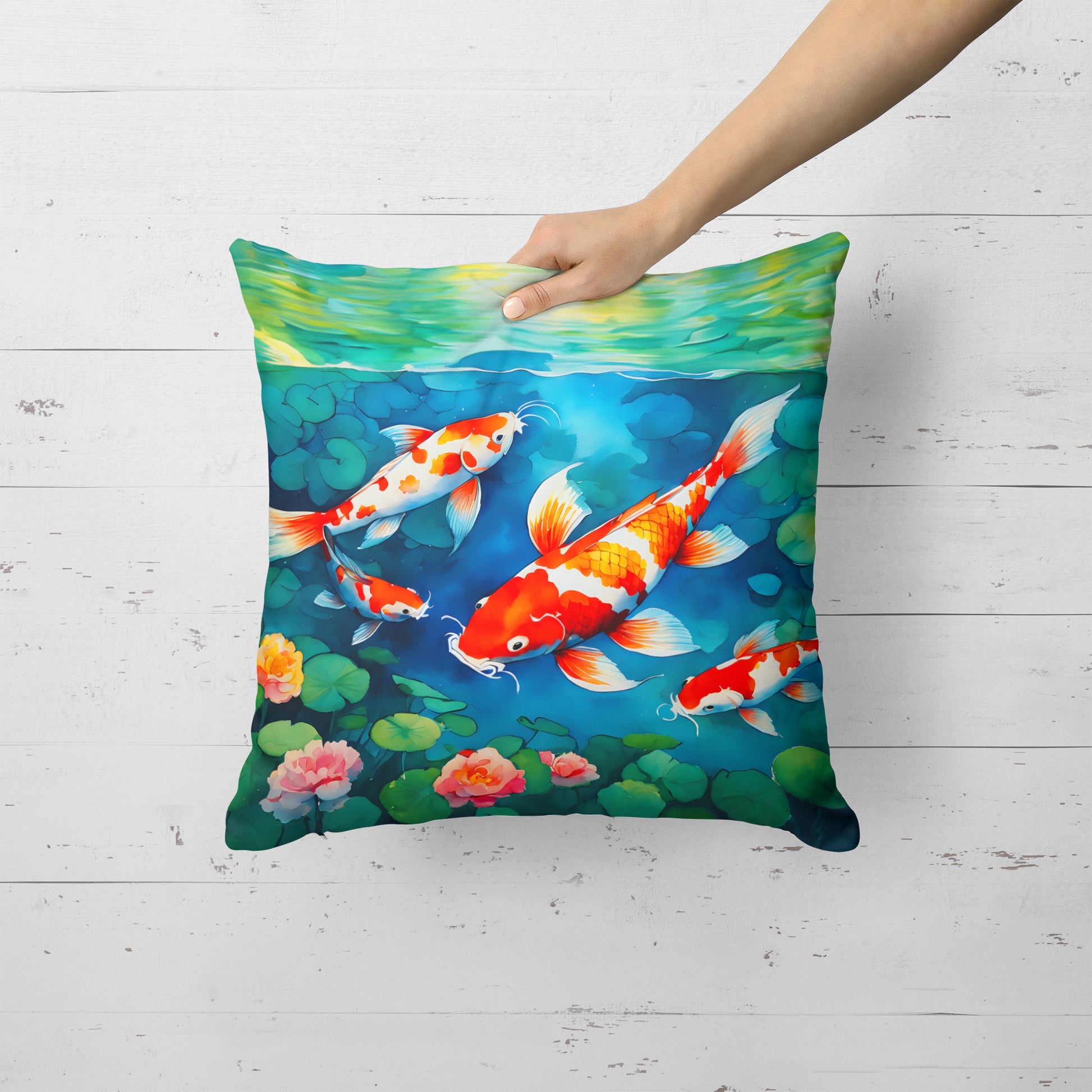 Throw Pillow featuring breed specific Koi Fish artwork. Revitalize your outdoor or indoor living space with Caroline's Treasures 18x18 Fabric Decorative Pillow. With a generously sized dimension of approximately 18 inches by 18 inches, this pillow makes a comfortable and aesthetic addition to any seating area. Made from a unique, water-resistant material developed by Caroline's Treasures, the pillow sham is 100% polyester fabric that's durable and ready to weather any condition. Its vibrant, full-color artwork will not fade over time as it is dyed with color-fast dyes. Whether you place it on your patio furniture, porch, veranda, or indoor couch, its soft canvas fabric ensures a cozy experience. The pillow is handcrafted in the United States, featuring a sham created from three pieces of fabric and a polyester insert for enduring shape and overstuffed comfort. Despite being robustly built to endure the outdoors, it is as soft and snug as your favorite indoor cushions. Please note, as all our pillows are handmade, sizes may vary slightly, adding to the charm of this unique decorative item.