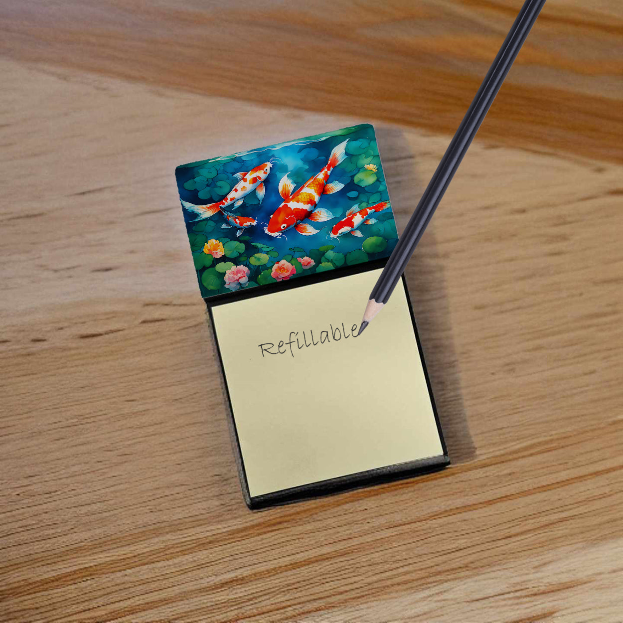 Sticky Note Holder featuring breed specific Koi Fish artwork. Add a touch of creativity and flair to your desk with the Decorative Sticky Note Holder from Caroline's Treasures. This uniquely designed sticky note dispenser will not only keep your notes in one place but also add an artistic element to your workspace. The top of the holder features beautiful artwork that is sure to catch the eye. Crafted for convenience, this sticky note holder comes with a small pad of 3-inch x 3-inch sticky notes at the bottom. The holder is designed for easy refilling; simply remove the last sheet of a new sticky note pad and stick it onto the board. This feature ensures you will always have sticky notes at your disposal. This Sticky Note Holder makes a perfect gift. Be it for your colleagues at work, your Facebook friends, or even your dog groomer or hairdresser, this versatile product fits the bill. You can use it for making grocery lists, leaving notes for loved ones, or for jotting down important reminders. The bottom board is rigid and can be magnetized by adding a business card size magnet to the back (sold separately). This makes it even more versatile, allowing you to place it on a refrigerator or any other magnetic surface. With this Sticky Note Holder, you're not only organizing your notes, but also personalizing your space.
