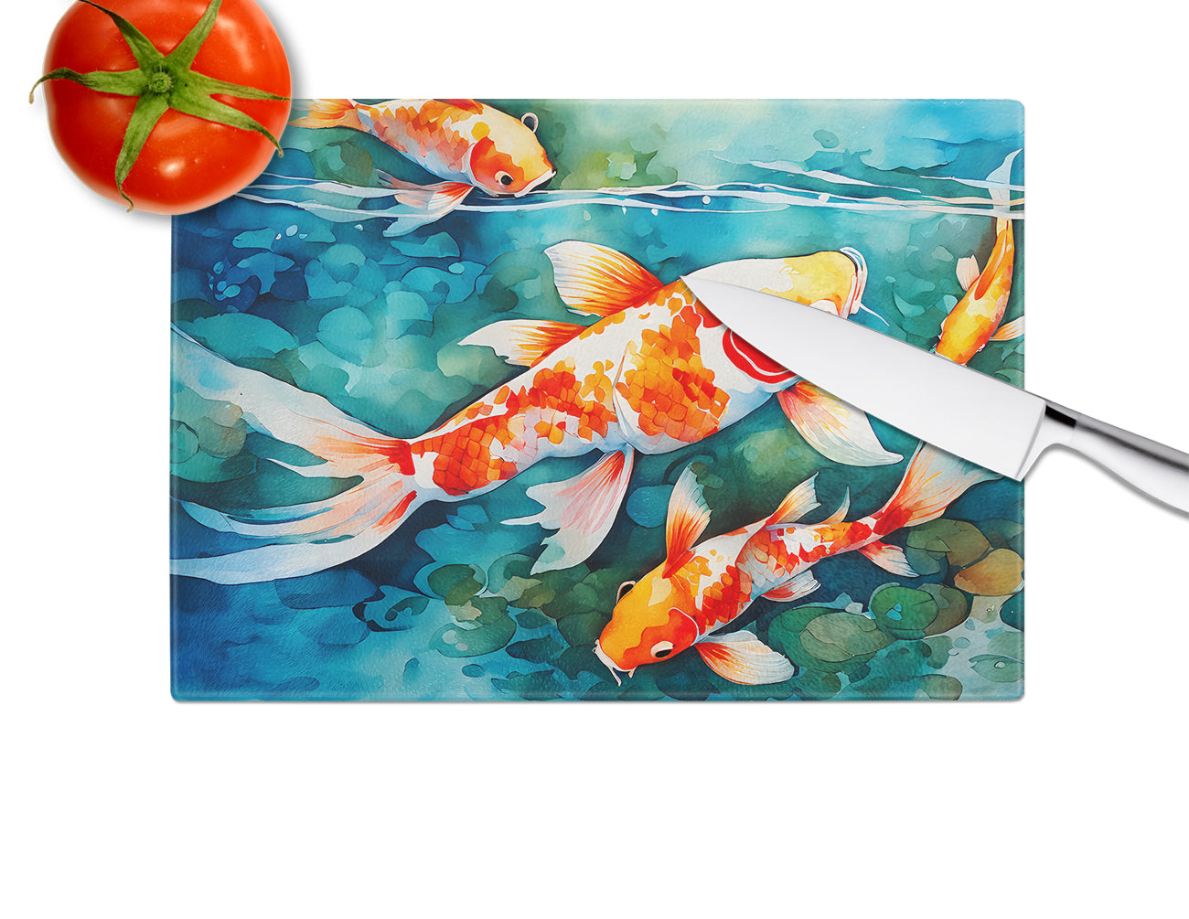 Glass Cutting Board featuring breed specific Koi Fish artwork. Introduce your kitchen to the vibrant, large Decorative Glass Cutting Board from Caroline's Treasures. Crafted from resilient tempered glass, this board is not only a utilitarian necessity but also a colorful art piece. With its generous dimensions of 15 inches in height and 12 inches in length, it offers ample space for all your cutting needs. Every piece showcases captivating artwork from distinguished artists, bringing an aesthetic edge to your kitchen. Beyond its attractive design, this cutting board ensures your countertop stays pristine and unscathed, owing to its heat-resistant properties. Engineered with user convenience in mind, it features non-skid feet for stability, and rounded corners for additional safety. Its robust construction renders it virtually unbreakable, guaranteeing longevity. The board comes with protective feet bumpers, maintaining its position during use. This product is recommended to be hand washed only. Proudly printed and assembled in the United States, this cutting board exemplifies superior craftsmanship. With Caroline's Treasures' Decorative Glass Cutting Board, you're investing in a blend of functionality and artistic flair.