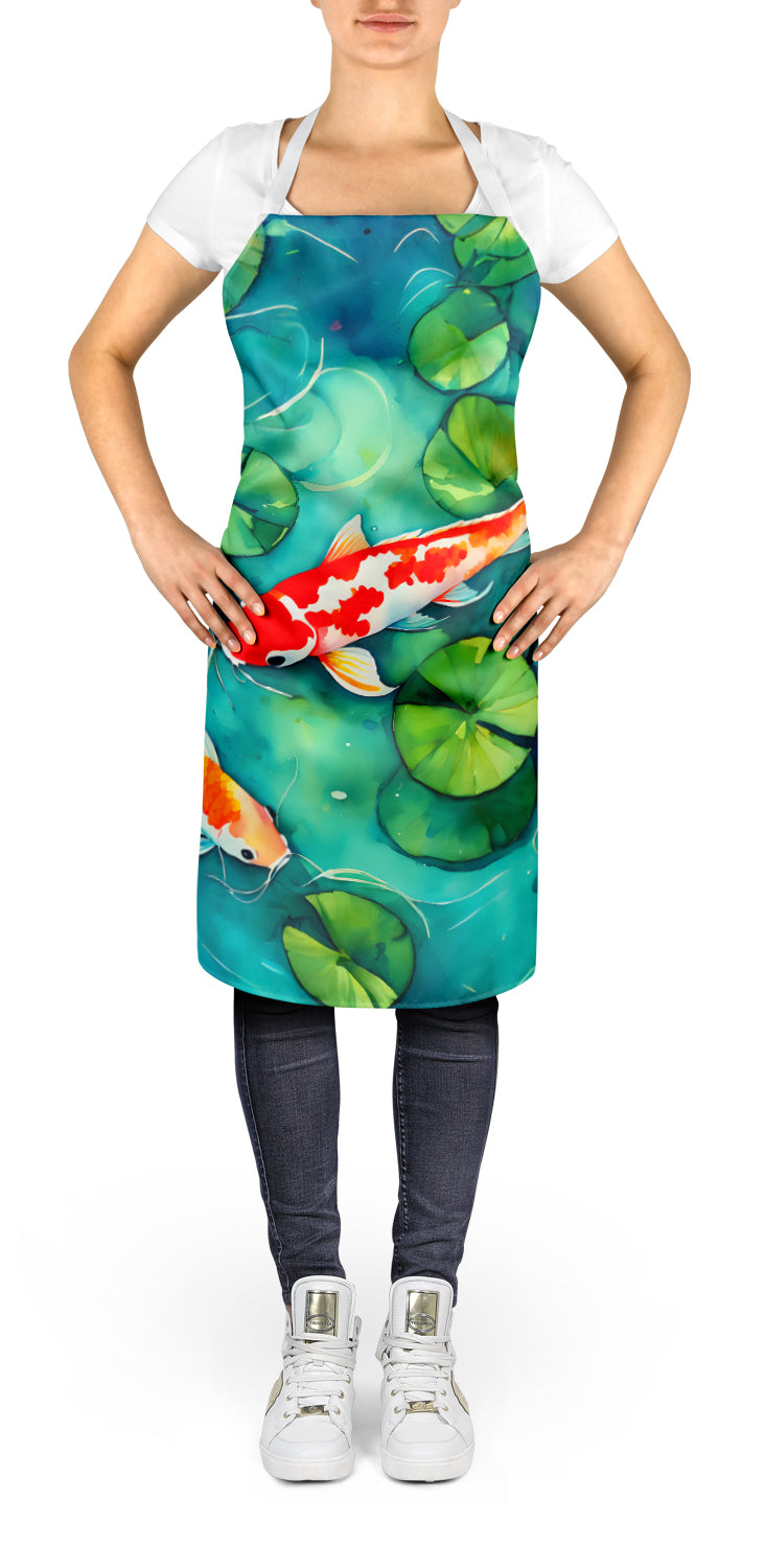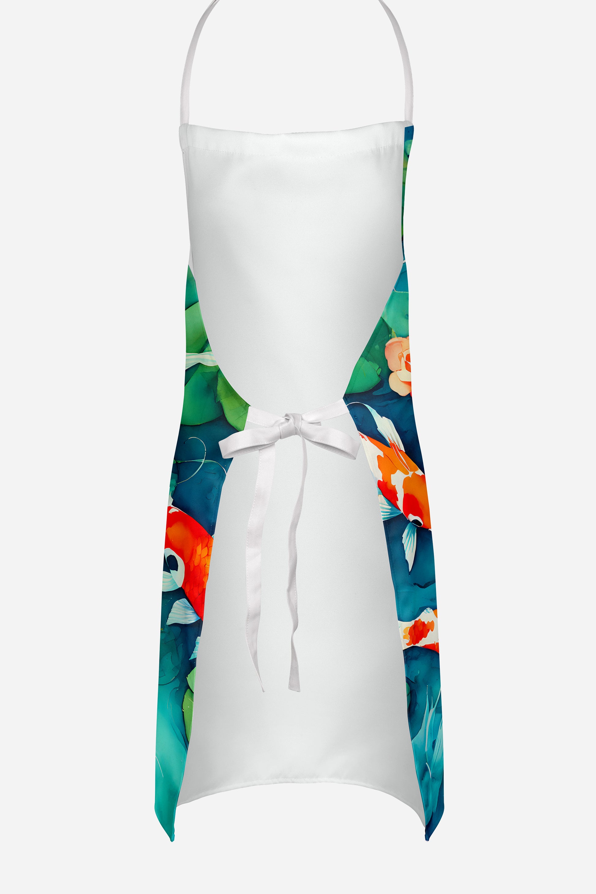 Apron featuring breed specific Koi Fish artwork. Elevate your cooking, baking, and grilling experiences with our versatile Kitchen or BBQ Apron. This Bib Style apron isn't just limited to culinary activities - it also serves as an excellent baking apron, artist apron, server apron, gardening apron, or even a dog grooming apron. The apron showcases vibrant full-color artwork contributed by one of our talented artists, bringing a dash of style to your daily tasks. With dimensions of approximately 27"W x 30"H, it provides ample coverage to protect your clothing from spills and splashes. Our apron is meticulously crafted from 100% Ultra Spun Polyester, known for its durability and lightweight nature. The apron comes with white tie straps, ensuring a comfortable and adjustable fit for all. It's a perfect choice for kitchen apron enthusiasts, whether you are a woman or a man. Designed for easy maintenance, this apron is fully machine washable. The quick-drying polyester material actively reduces staining, keeping your apron looking fresh and new for longer. Our beautifully designed apron isn't just a functional kitchen accessory - it's a fashion statement in the culinary world!