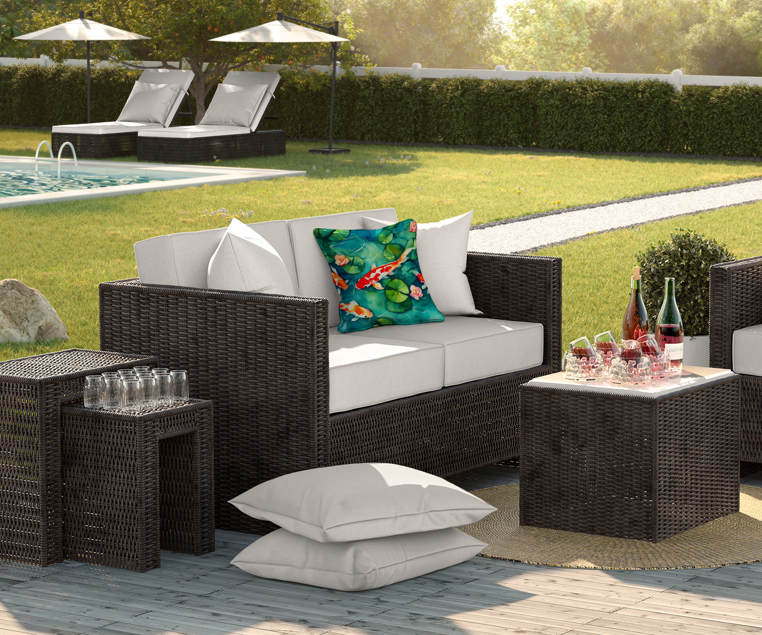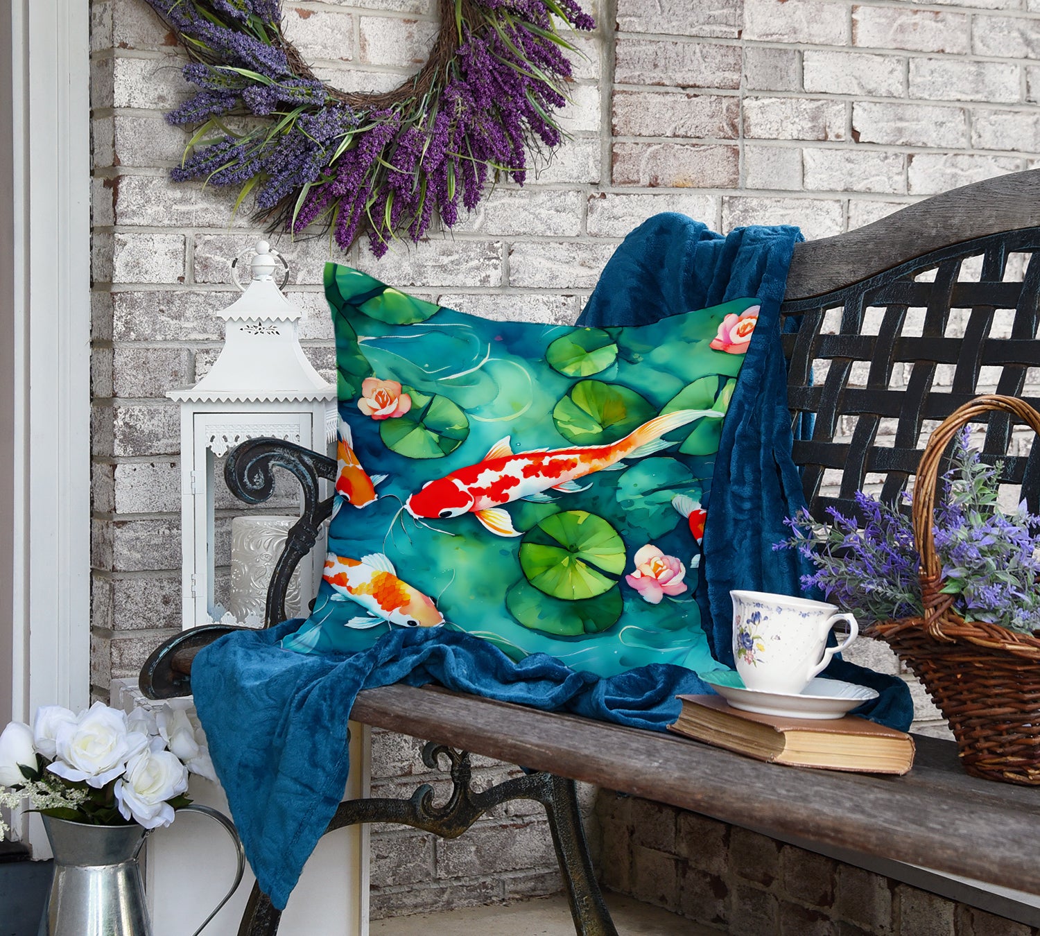 Throw Pillow featuring breed specific Koi Fish artwork. Revitalize your outdoor or indoor living space with Caroline's Treasures 18x18 Fabric Decorative Pillow. With a generously sized dimension of approximately 18 inches by 18 inches, this pillow makes a comfortable and aesthetic addition to any seating area. Made from a unique, water-resistant material developed by Caroline's Treasures, the pillow sham is 100% polyester fabric that's durable and ready to weather any condition. Its vibrant, full-color artwork will not fade over time as it is dyed with color-fast dyes. Whether you place it on your patio furniture, porch, veranda, or indoor couch, its soft canvas fabric ensures a cozy experience. The pillow is handcrafted in the United States, featuring a sham created from three pieces of fabric and a polyester insert for enduring shape and overstuffed comfort. Despite being robustly built to endure the outdoors, it is as soft and snug as your favorite indoor cushions. Please note, as all our pillows are handmade, sizes may vary slightly, adding to the charm of this unique decorative item.
