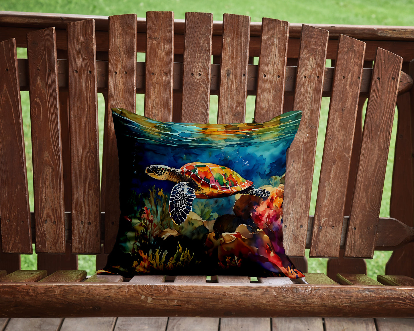 Throw Pillow featuring breed specific Loggerhead Sea Turtle artwork. Add a touch of vibrancy and comfort to your outdoor seating with Caroline's Treasures Fabric Decorative Pillow. Measuring approximately 14 inches by 14 inches, this outdoor pillow is crafted to elevate the appeal of your patio furniture, infusing it with vivid color and artistic flair. The pillow includes a 100% Polyester Fabric sham filled with a quality pillow form to provide superior comfort. Innovatively made from our brand new material, specifically woven for its water resistance, this pillow is designed for durability. The soft canvas fabric offers versatility in use, fit for your indoor couch or your outdoor patio, porch, or veranda. The fabric is dyed with colorfast dyes built for resilience against weather conditions, ensuring the pillow retains its beauty over time. Constructed by sewing three fabric pieces to create a sham, the polyester insert is then nestled inside to form the pillow, resulting in an overstuffed pillow that maintains its shape. Both the sham and the pillow insert are proudly made in the United States. As the pillows are handcrafted, there may be minor variations in size, further enhancing their unique charm. Experience comfort in style with Caroline's Treasures Fabric Decorative Pillow.