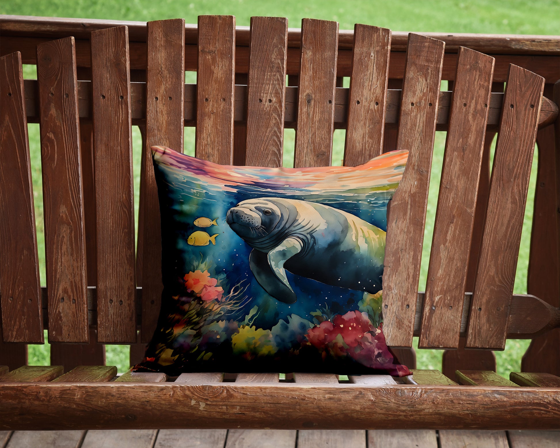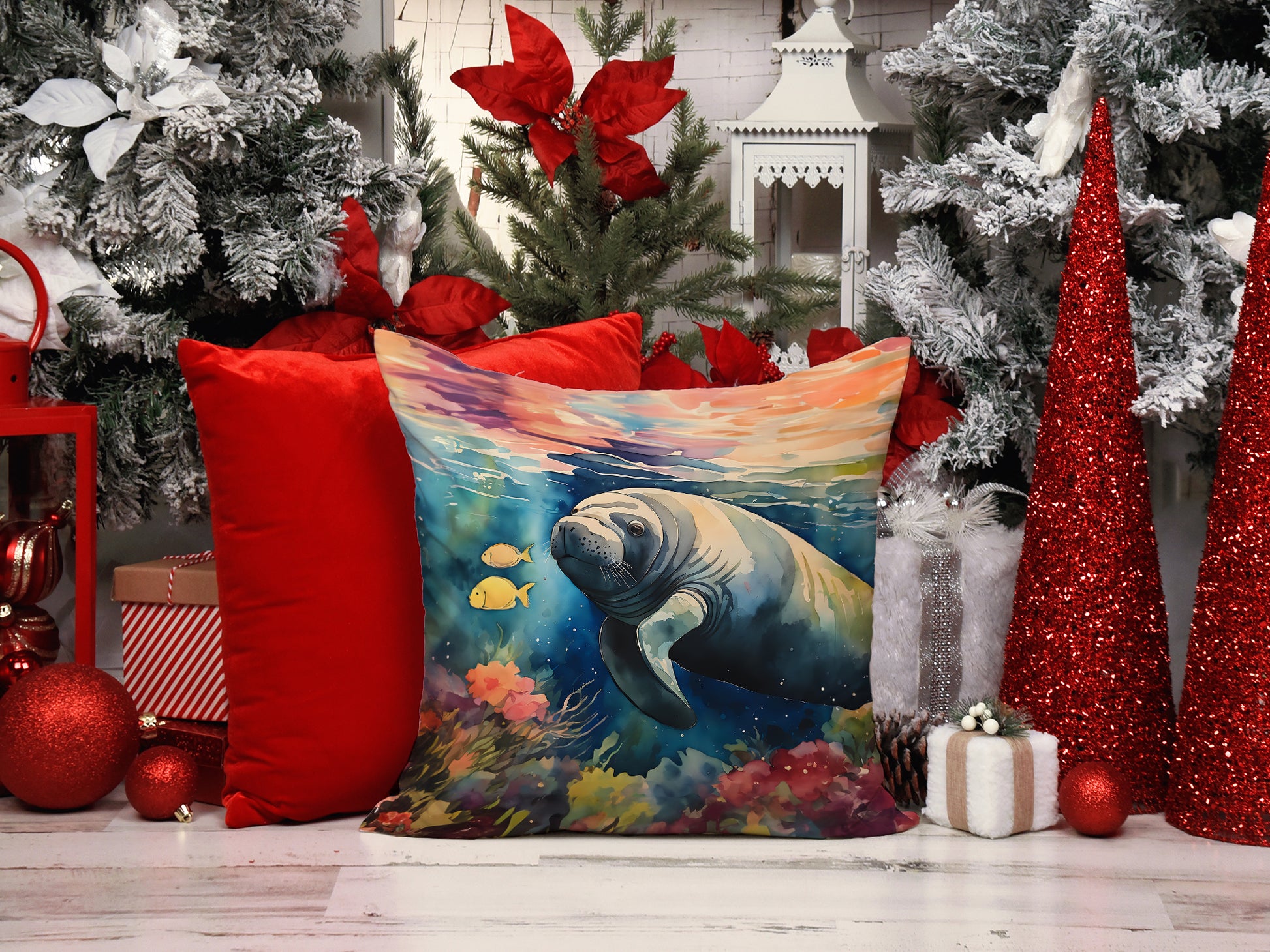 Throw Pillow featuring breed specific Manatee artwork. Add a touch of vibrancy and comfort to your outdoor seating with Caroline's Treasures Fabric Decorative Pillow. Measuring approximately 14 inches by 14 inches, this outdoor pillow is crafted to elevate the appeal of your patio furniture, infusing it with vivid color and artistic flair. The pillow includes a 100% Polyester Fabric sham filled with a quality pillow form to provide superior comfort. Innovatively made from our brand new material, specifically woven for its water resistance, this pillow is designed for durability. The soft canvas fabric offers versatility in use, fit for your indoor couch or your outdoor patio, porch, or veranda. The fabric is dyed with colorfast dyes built for resilience against weather conditions, ensuring the pillow retains its beauty over time. Constructed by sewing three fabric pieces to create a sham, the polyester insert is then nestled inside to form the pillow, resulting in an overstuffed pillow that maintains its shape. Both the sham and the pillow insert are proudly made in the United States. As the pillows are handcrafted, there may be minor variations in size, further enhancing their unique charm. Experience comfort in style with Caroline's Treasures Fabric Decorative Pillow.