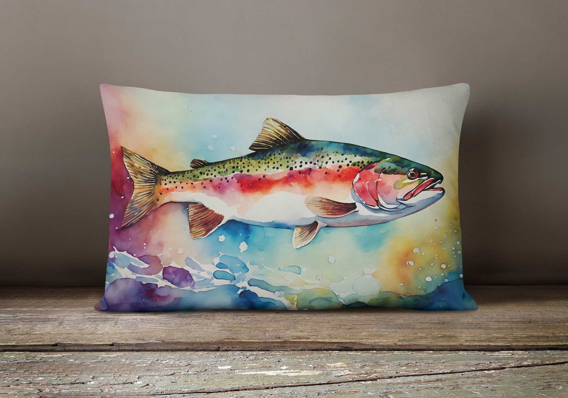 Throw Pillow featuring breed specific Rainbow Trout artwork. Embrace the fusion of comfort and style with Caroline's Treasures Fabric Decorative Pillow. This 12x16 inch outdoor pillow is designed to complement your patio furniture, adding a splash of color and artistry to your outdoor setting. Constructed with a 100% Polyester Fabric pillow sham filled with a plush pillow form, this cushion is as comfortable as it is durable. Our outdoor pillow utilizes a novel fabric, meticulously woven for enhanced water resistance. This soft canvas material is equally suited for your indoor couch as well as outdoor settings such as the patio, porch, or veranda. To ensure enduring vibrance, we employ colorfast dyes resistant to fading even when subjected to weather elements. The making of this pillow involves the delicate sewing together of three fabric pieces to create a sham, into which a polyester insert is carefully placed. The result is an overstuffed pillow that tenaciously holds its shape. With both the sham and the pillow insert crafted in the United States, these handmade pillows are a testament to superior local craftsmanship. Note that as these pillows are handmade, sizes may slightly vary, enhancing their unique appeal. Enjoy comfort in style with Caroline's Treasures Fabric Decorative Pillow.