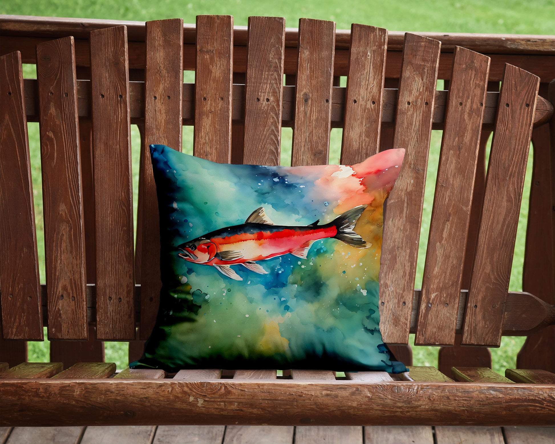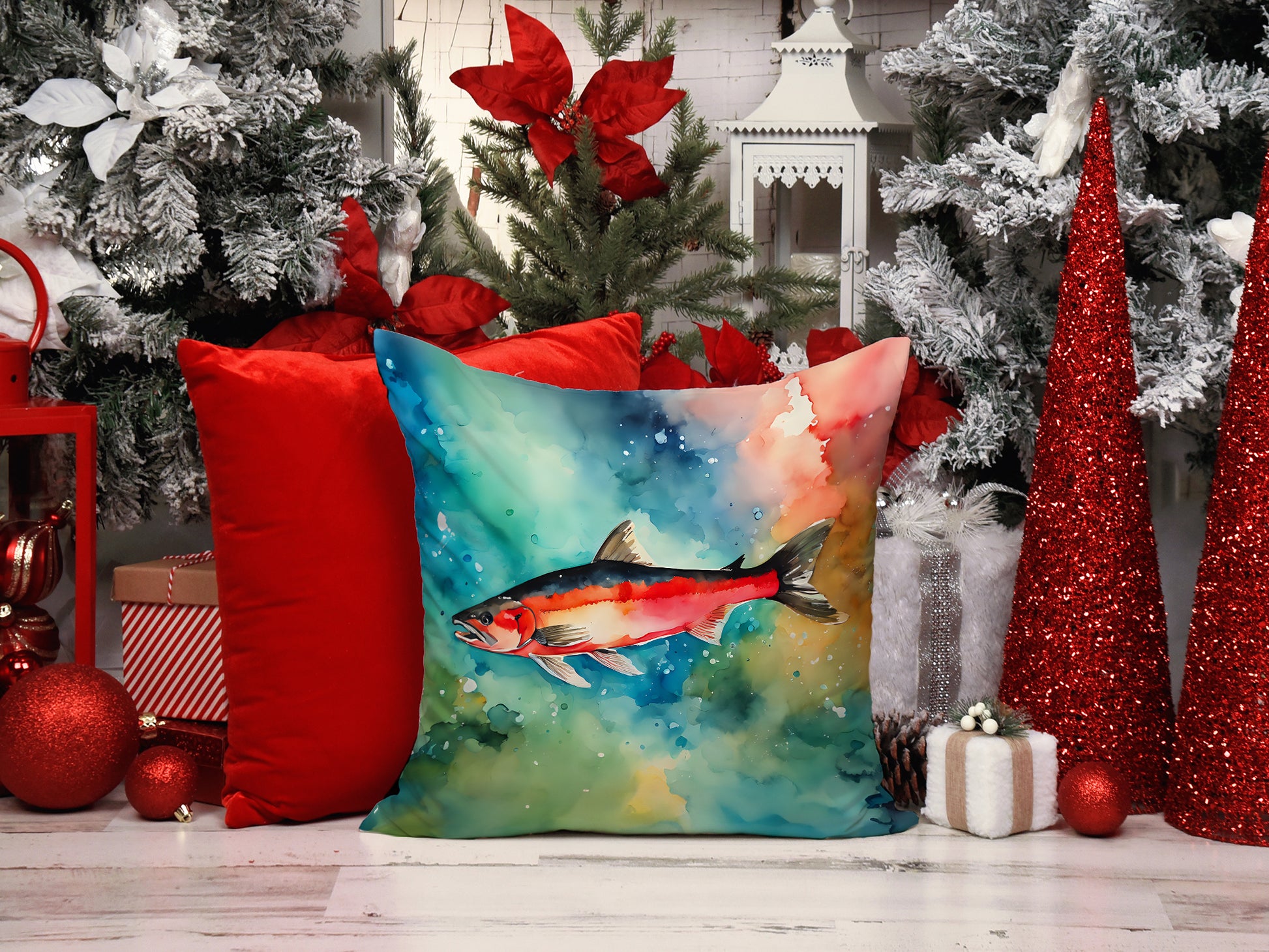 Throw Pillow featuring breed specific Salmon artwork. Add a touch of vibrancy and comfort to your outdoor seating with Caroline's Treasures Fabric Decorative Pillow. Measuring approximately 14 inches by 14 inches, this outdoor pillow is crafted to elevate the appeal of your patio furniture, infusing it with vivid color and artistic flair. The pillow includes a 100% Polyester Fabric sham filled with a quality pillow form to provide superior comfort. Innovatively made from our brand new material, specifically woven for its water resistance, this pillow is designed for durability. The soft canvas fabric offers versatility in use, fit for your indoor couch or your outdoor patio, porch, or veranda. The fabric is dyed with colorfast dyes built for resilience against weather conditions, ensuring the pillow retains its beauty over time. Constructed by sewing three fabric pieces to create a sham, the polyester insert is then nestled inside to form the pillow, resulting in an overstuffed pillow that maintains its shape. Both the sham and the pillow insert are proudly made in the United States. As the pillows are handcrafted, there may be minor variations in size, further enhancing their unique charm. Experience comfort in style with Caroline's Treasures Fabric Decorative Pillow.