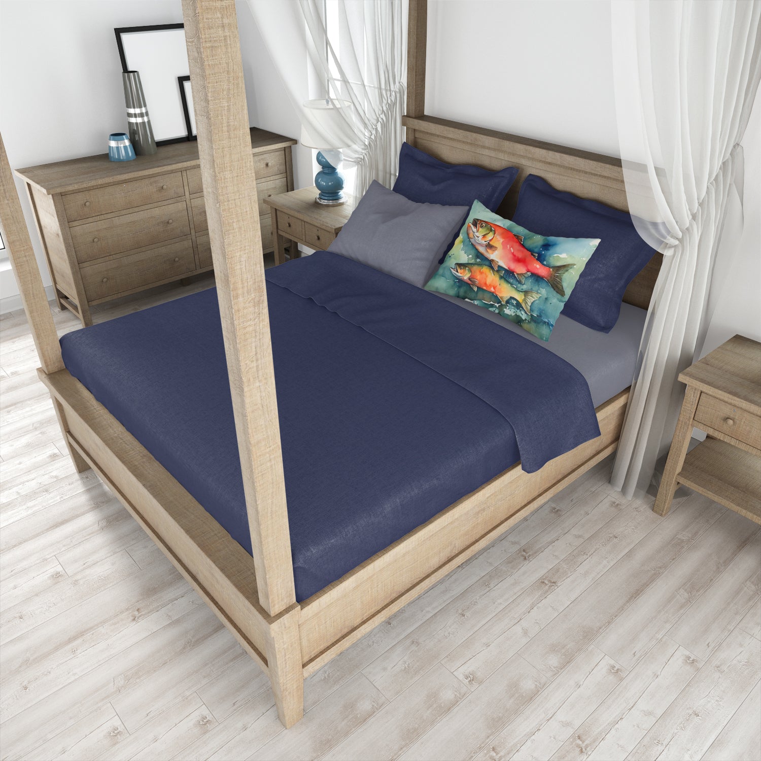 Standard Pillowcase featuring breed specific Salmon artwork. Experience an upgrade in your sleeping comfort with our Fabric Standard Pillowcase, designed to balance style, comfort, and practicality. Showcasing vibrant artwork on the front and a standard white on the back, this pillowcase is more than a functional item�it's an expression of your personal style. Crafted from premium moisture-wicking material, our pillowcase ensures a pleasant sleeping experience. The breathable performance fabric allows for excellent air circulation, keeping you cool and comfortable throughout the night while also demonstrating exceptional quality. This pillowcase, measuring 30 x 20.5 inches with a slender 0.15 inch thickness, and weighing only 0.25 lbs, fits a standard pillow perfectly. Maintaining our pillowcase is hassle-free. It requires no ironing�simply wash in cold water and dry at medium heat. Bring art and luxury into your bedroom with our Fabric Standard Pillowcase. Its unique design and top-tier fabric contribute to a relaxing and rejuvenating sleep experience. Brighten your bedroom decor while enhancing your sleep with our high-performance pillowcase.