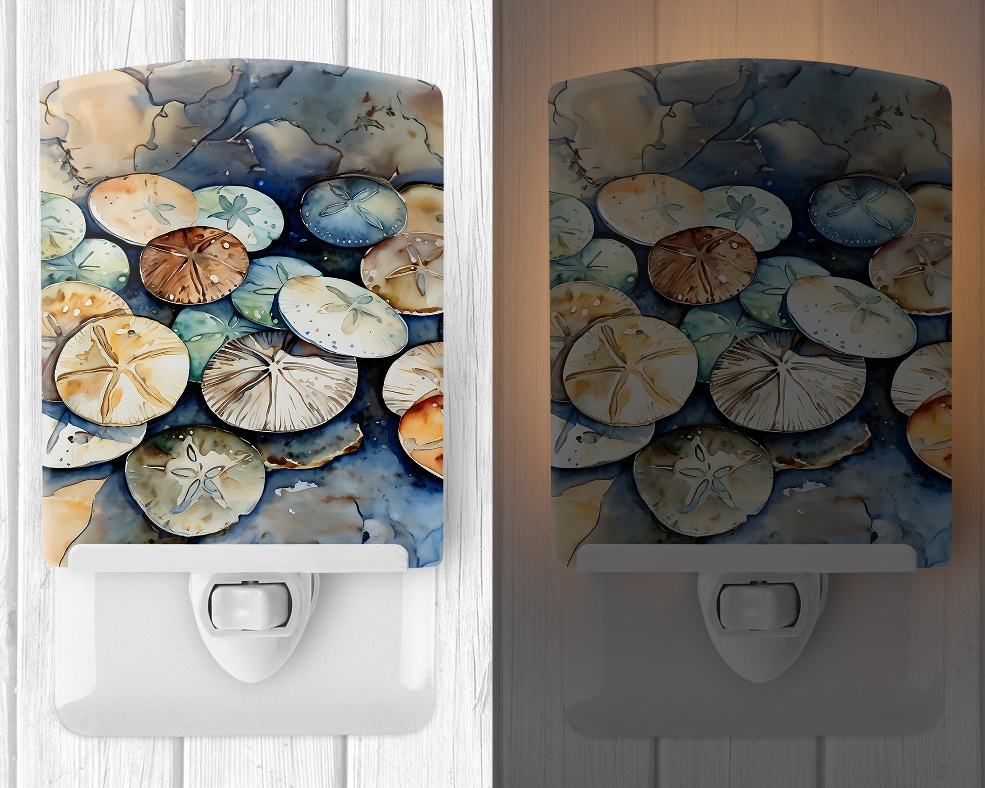 Ceramic Night Light featuring breed specific Sand Dollars artwork. Introduce a splash of artistic flair and subtle illumination to your space with the Decorative Ceramic Night Light from Caroline's Treasures. Perfect for any room, this night light seamlessly blends functionality with an aesthetic appeal, offering a stylish solution to brighten up dark corners of your home or office. Boasting a six-inch high by four-inch wide ceramic tile at the front, it showcases vivid, full-color artwork from distinguished artists, transforming a simple utility into a vibrant art piece. The artwork is securely encased in a robust metal holder, ensuring durability and longevity. Two screws are provided to firmly affix the tile into the holder. The holder extends three inches deep, housing an included bulb that emits a soft, welcoming glow. This product meets all safety standards, as evidenced by its UL approval. Proudly made in the United States from imported components, this Decorative Ceramic Night Light is not just a functional device; it's a statement piece that enhances the ambiance of your surroundings.