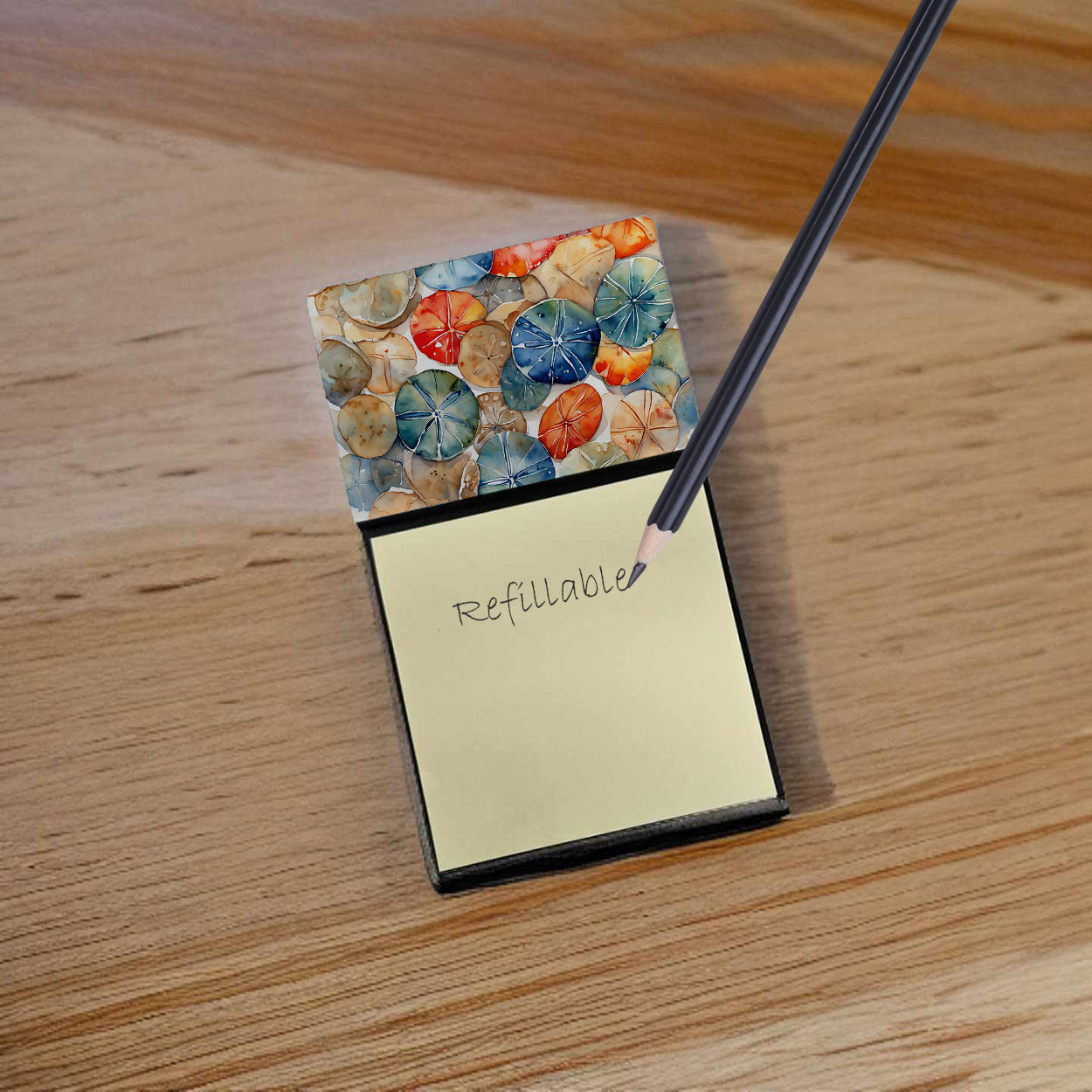 Sticky Note Holder featuring breed specific Sand Dollars artwork. Add a touch of creativity and flair to your desk with the Decorative Sticky Note Holder from Caroline's Treasures. This uniquely designed sticky note dispenser will not only keep your notes in one place but also add an artistic element to your workspace. The top of the holder features beautiful artwork that is sure to catch the eye. Crafted for convenience, this sticky note holder comes with a small pad of 3-inch x 3-inch sticky notes at the bottom. The holder is designed for easy refilling; simply remove the last sheet of a new sticky note pad and stick it onto the board. This feature ensures you will always have sticky notes at your disposal. This Sticky Note Holder makes a perfect gift. Be it for your colleagues at work, your Facebook friends, or even your dog groomer or hairdresser, this versatile product fits the bill. You can use it for making grocery lists, leaving notes for loved ones, or for jotting down important reminders. The bottom board is rigid and can be magnetized by adding a business card size magnet to the back (sold separately). This makes it even more versatile, allowing you to place it on a refrigerator or any other magnetic surface. With this Sticky Note Holder, you're not only organizing your notes, but also personalizing your space.