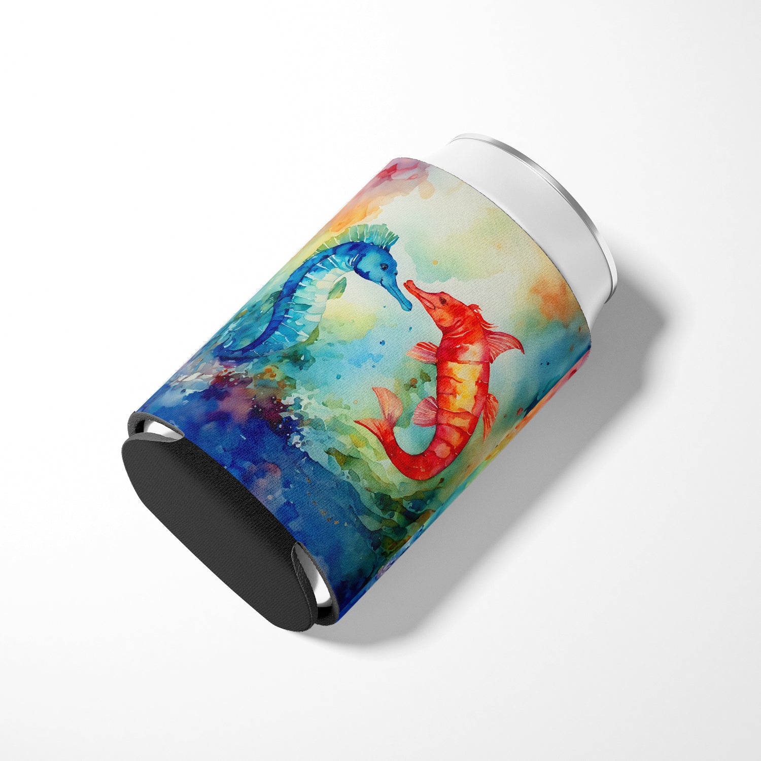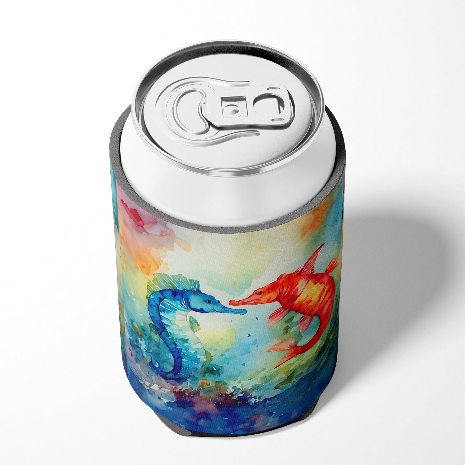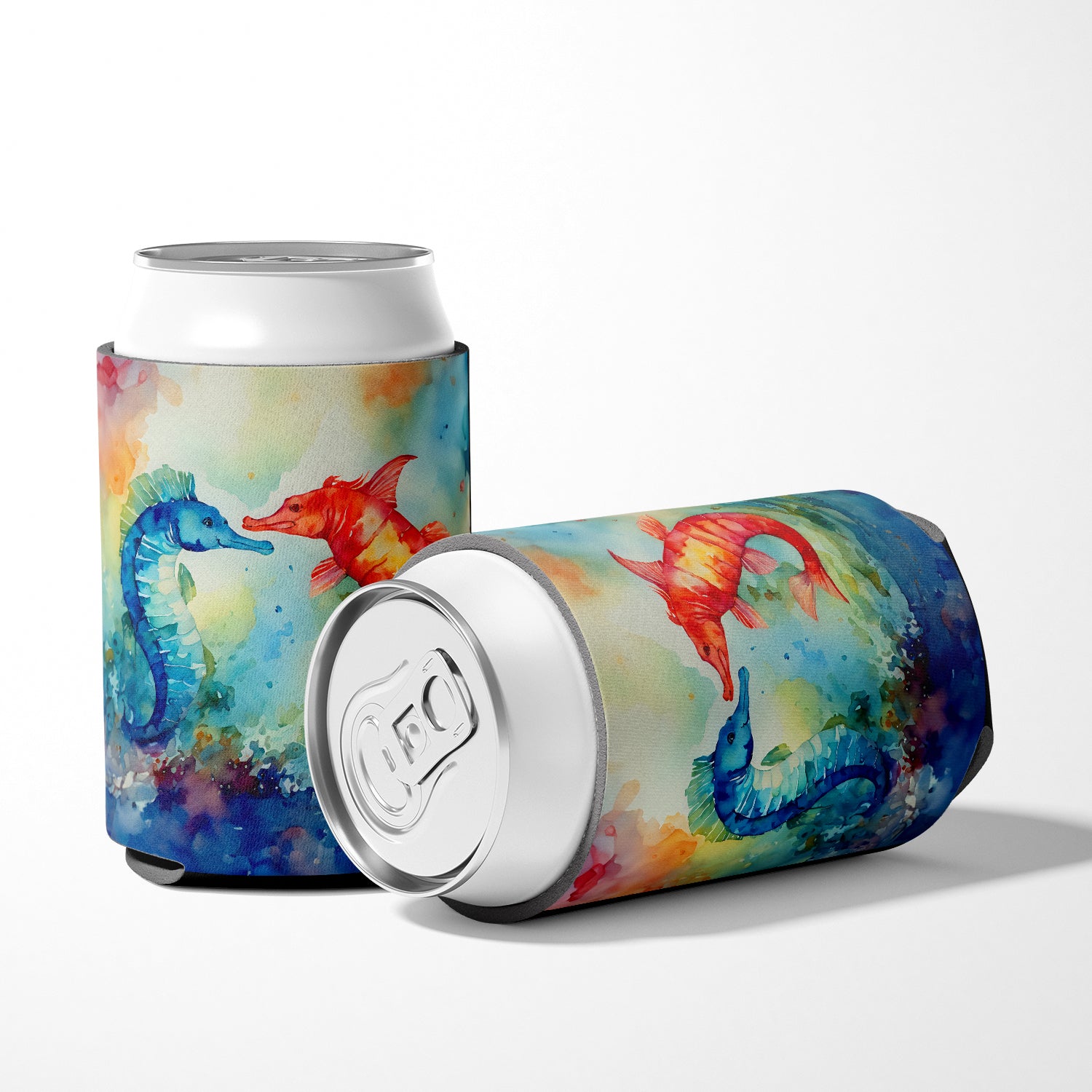 Can or Bottle Hugger featuring breed specific Seahorses artwork. Introducing our Can or Bottle Hugger, a must-have accessory for your beverage enjoyment. Designed to perfectly fit any standard 12-ounce can, this can cooler is the ideal companion to keep your soda, beer, or any drink of your choice at the perfect temperature. Our can hugger is not just functional, it's a work of art. Featuring full-color artwork that's permanently dyed into the foam, this hugger promises a design that's fade-resistant and made to last, making your beverage stand out in style. The design isn't silk-screened, which ensures the vibrancy of the colors, offering you a long-lasting, appealing aesthetic. What sets our can hugger apart is its high-quality foam fabric, which is not only durable but also machine washable for easy maintenance. Whether you call it a huggie, can coolie, can cozie, or beer holder, this drink sleeve brings style and function together. Proudly designed, printed, and sewn in the USA, our Can or Bottle Hugger is an ideal addition to your beverage experience. Match it with one of our insulated coolers for a complete gift set, adding flair and convenience to your drink enjoyment.