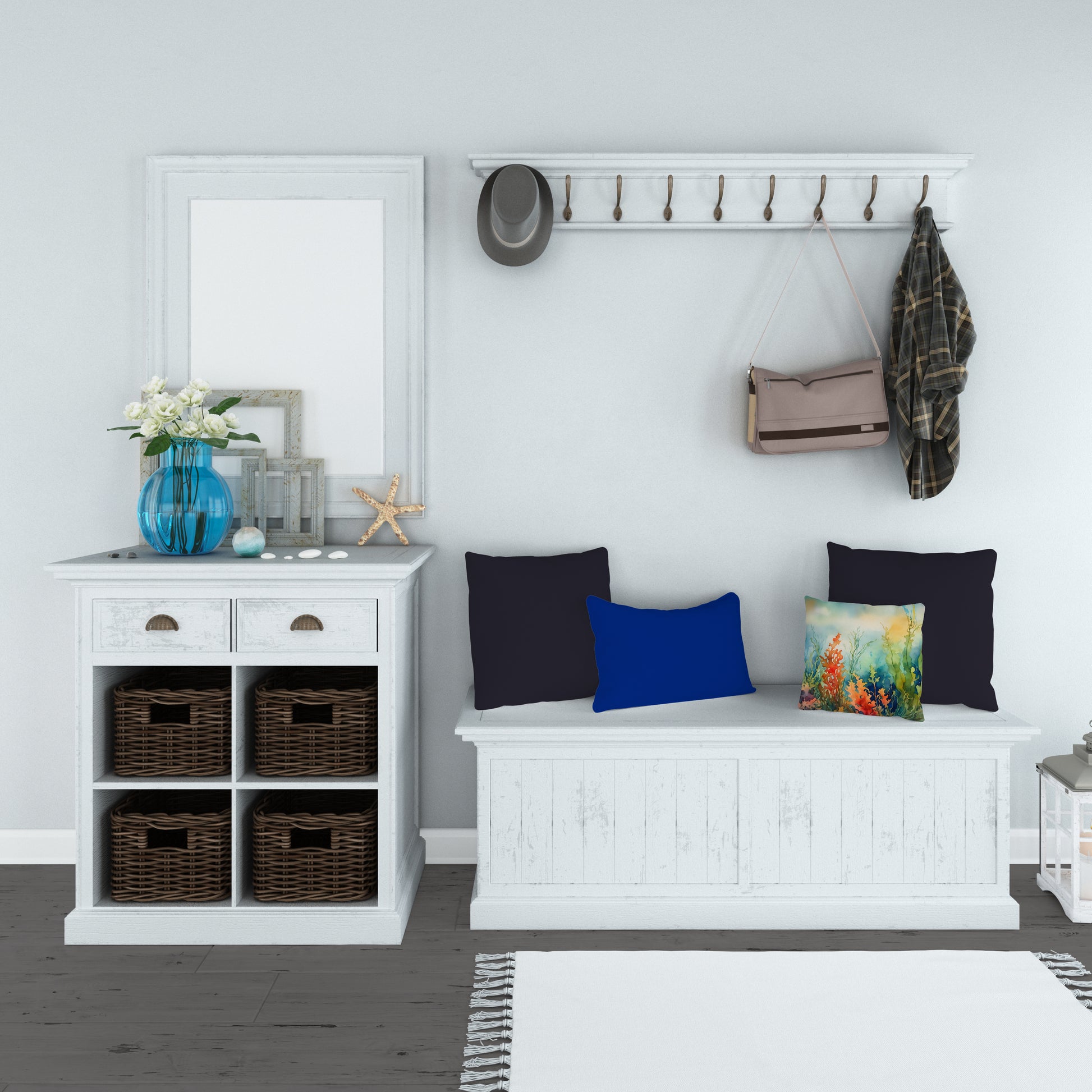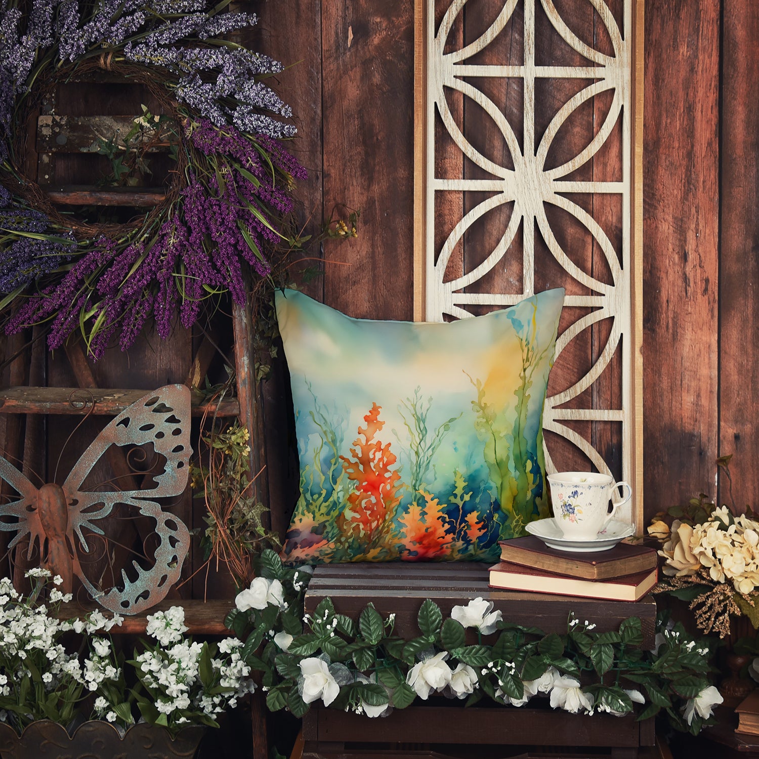 Throw Pillow featuring breed specific Seaweed artwork. Add a touch of vibrancy and comfort to your outdoor seating with Caroline's Treasures Fabric Decorative Pillow. Measuring approximately 14 inches by 14 inches, this outdoor pillow is crafted to elevate the appeal of your patio furniture, infusing it with vivid color and artistic flair. The pillow includes a 100% Polyester Fabric sham filled with a quality pillow form to provide superior comfort. Innovatively made from our brand new material, specifically woven for its water resistance, this pillow is designed for durability. The soft canvas fabric offers versatility in use, fit for your indoor couch or your outdoor patio, porch, or veranda. The fabric is dyed with colorfast dyes built for resilience against weather conditions, ensuring the pillow retains its beauty over time. Constructed by sewing three fabric pieces to create a sham, the polyester insert is then nestled inside to form the pillow, resulting in an overstuffed pillow that maintains its shape. Both the sham and the pillow insert are proudly made in the United States. As the pillows are handcrafted, there may be minor variations in size, further enhancing their unique charm. Experience comfort in style with Caroline's Treasures Fabric Decorative Pillow.