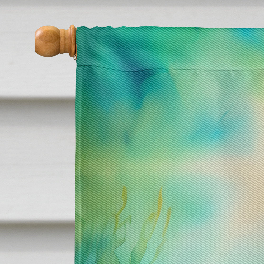House Flag featuring breed specific Seaweed artwork. Presenting our Heavy Duty Polyester House Size Decorative Sleeve Pole Flag, a vibrant addition to enhance the aesthetic appeal of your home. This large decorative flag, measuring approximately 28 x 40 inches, offers ample coverage and visibility. Each flag is meticulously sewn and made individually, ensuring a unique piece that may slightly vary in size. It's a sleeve pole flag, designed to fit a standard decorative flag pole effortlessly. Please note that the flag pole and bracket are not included and should be purchased separately. What sets our flag apart is its dual-sided print. The design is mirrored on both sides of the fabric, allowing for uniform visibility regardless of the angle. Printed in full color, our flag showcases vibrant hues that truly stand out. To ensure lasting vibrancy and durability, the dyes are heat-set into the fabric. This ensures your flag remains bright and captivating through various weather conditions. Elevate the look of your home with our Heavy Duty Polyester House Size Decorative Sleeve Pole Flag!